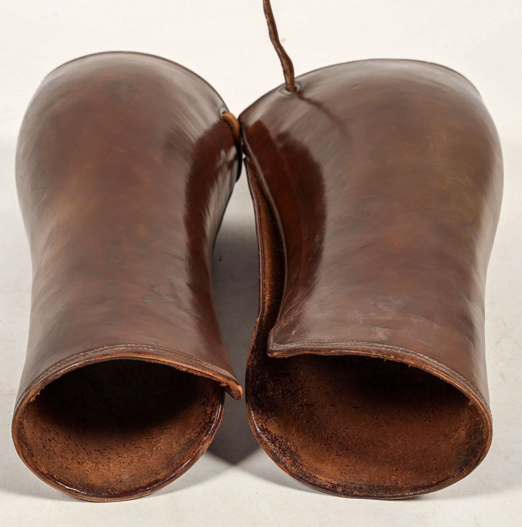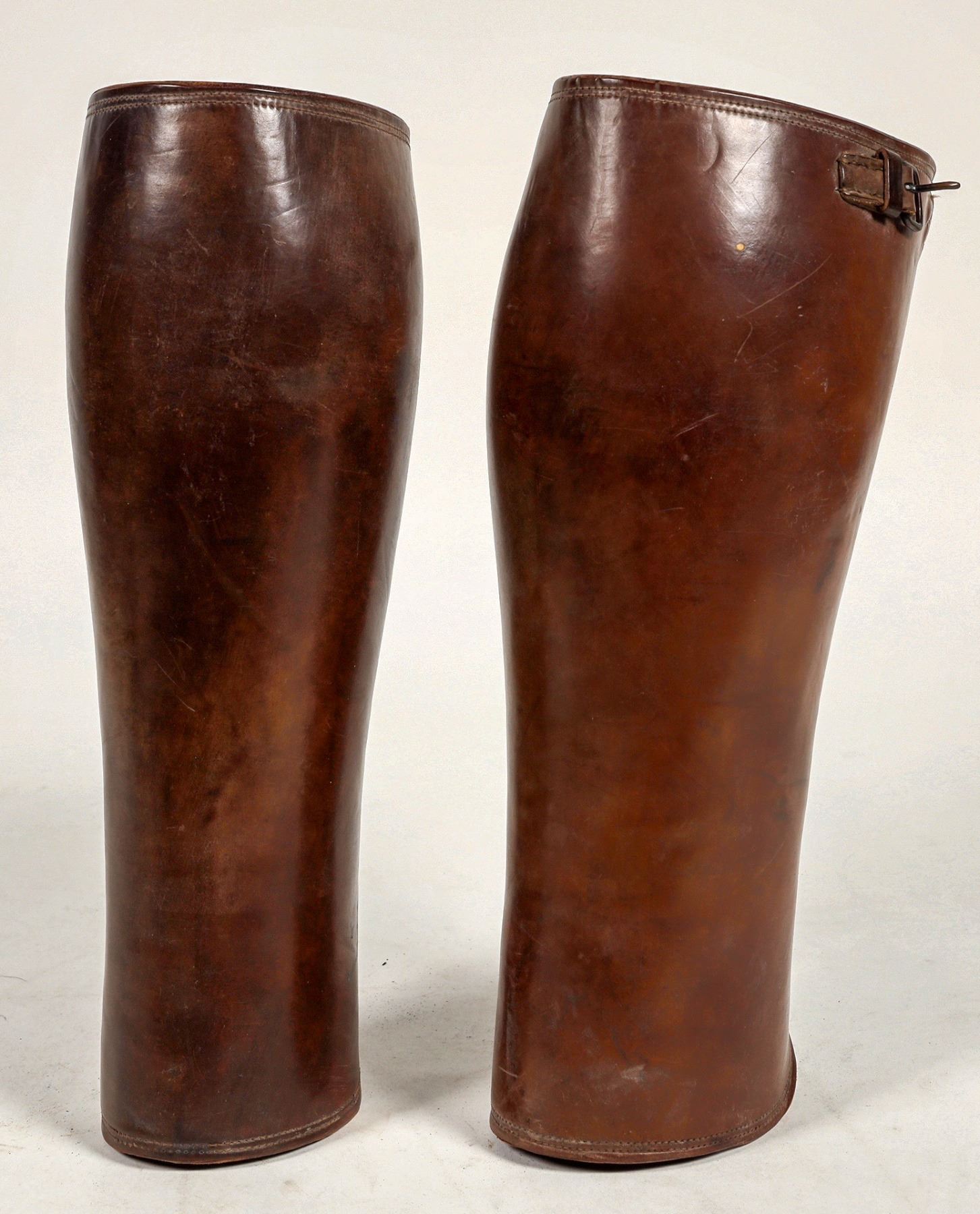 These are half chaps for horse riding when style means everything. Marked 14 1/2 in brown gloss leather. Carefully used.