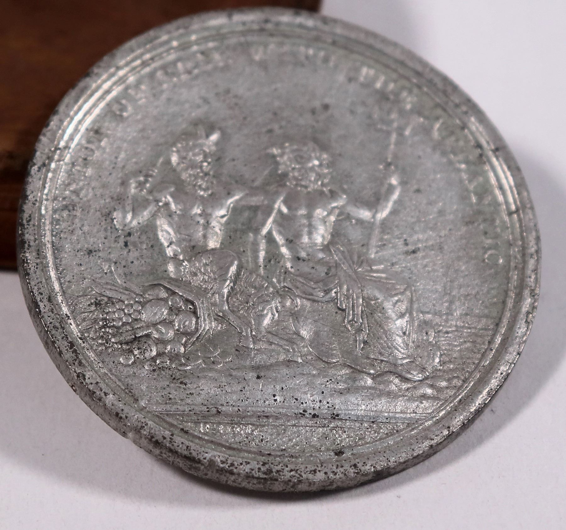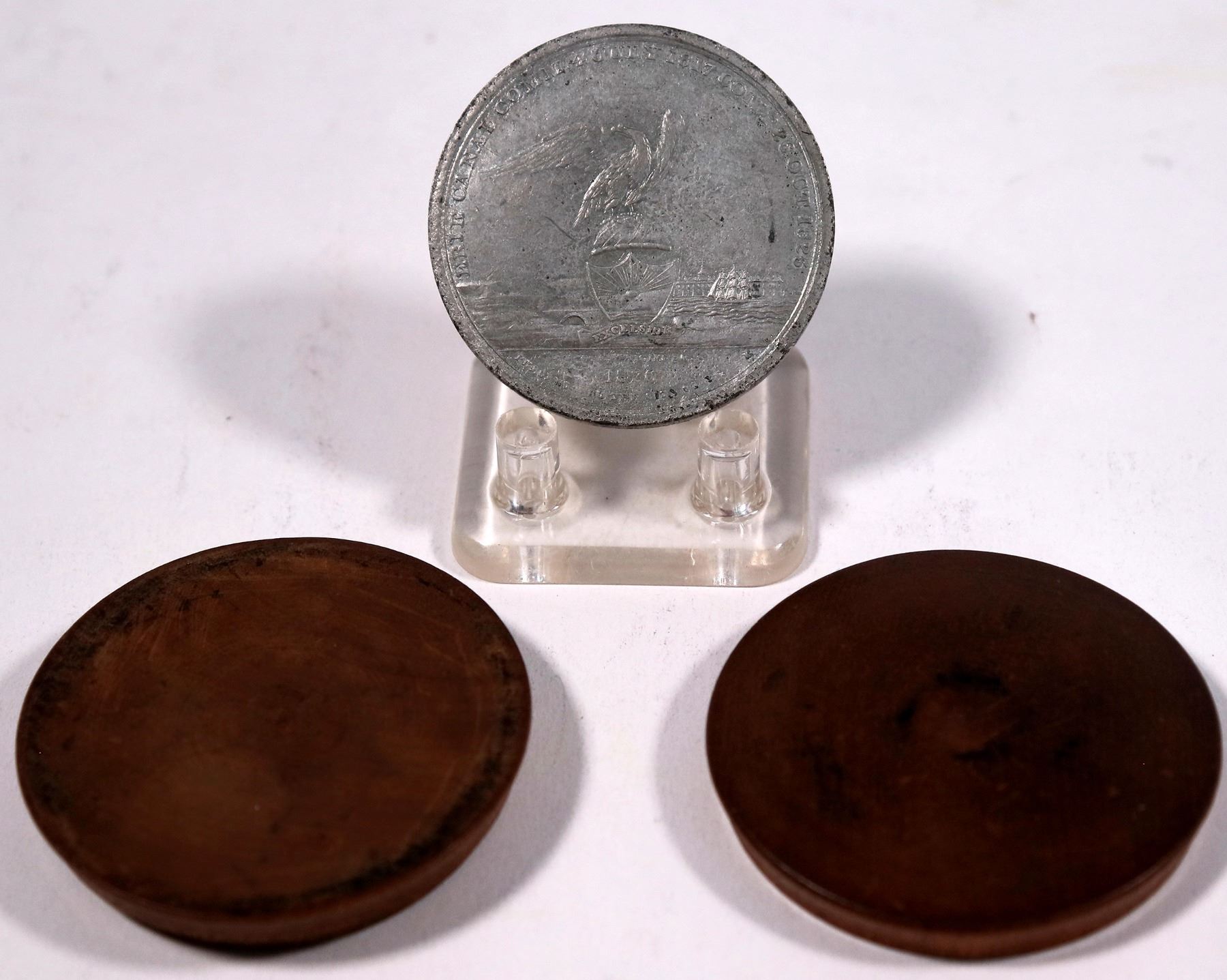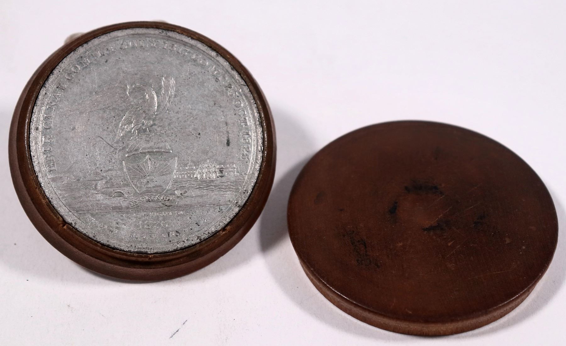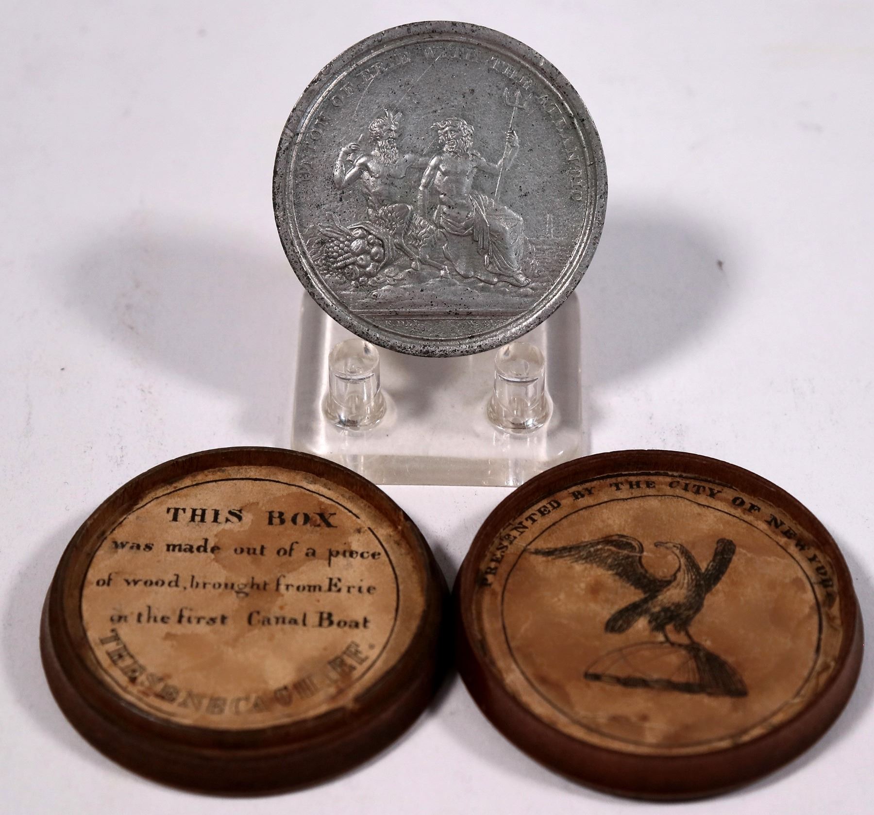 This is the classic very first so-called dollar listed by Hibler-Kappan. It commemorates the opening of the Erie canal in 1825. In the 1820s and 30s America's main transportation routes were a series of constructed canals rather than muddy dirt roads winding through the countryside. It greatly sped up transportation of goods and services throughout then Midwest to the East coast. In July 2020 Dave Bowers published an article on this medal in the Numismatist, pages 75-76. This piece is white metal. A copy of the article is included.