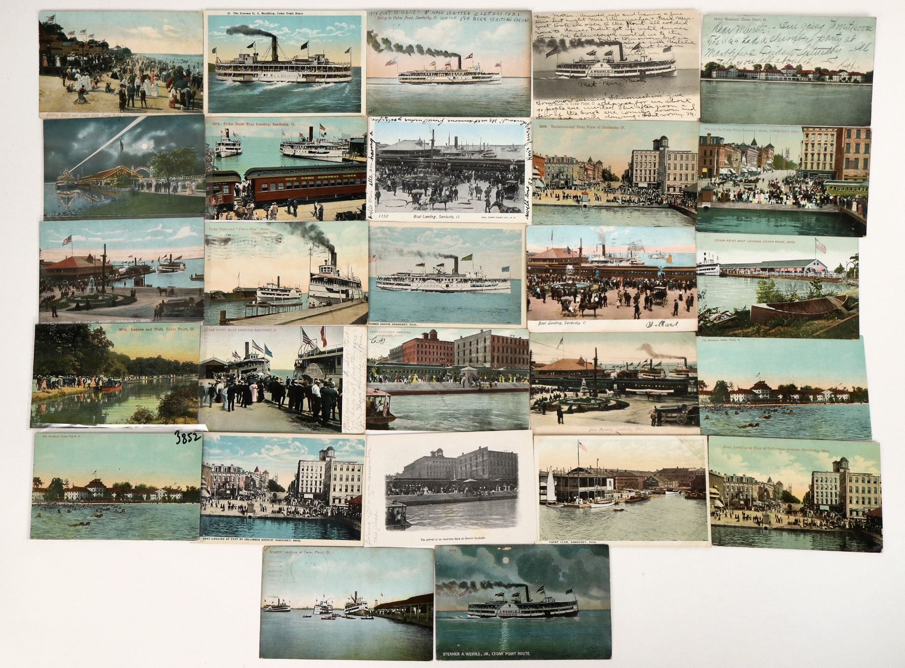 26 Cedar Point harbor postcards. Steamers, Columbus Ave., yacht club, boat landing etc.