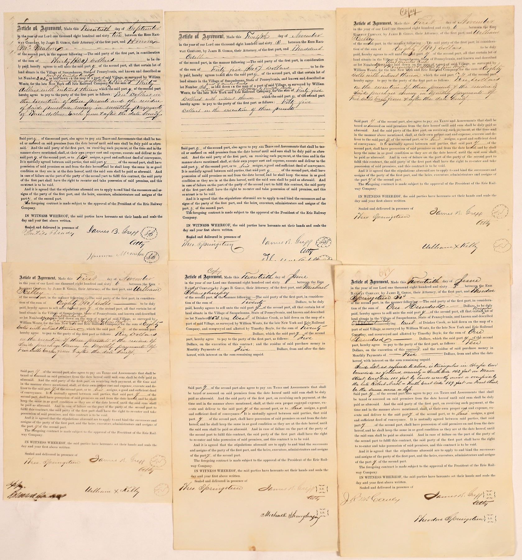 Here is some interesting railroad documents. 1) All for land on Drinker Creek in Susquehanna Village in Pennsylvania. Dated 1862-1868. Records of payment received on reverse. Line ran from Lake Erie to Jersey City. Pennsylvania 1860's