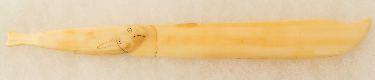 Eskimo carved ivory letter opener. Handle has whale and blade has walrus on ice flow. Approx. 8.5" long. Beautiful piece! State: Alaska City: Date: c.1900 FHWAC#: 41941