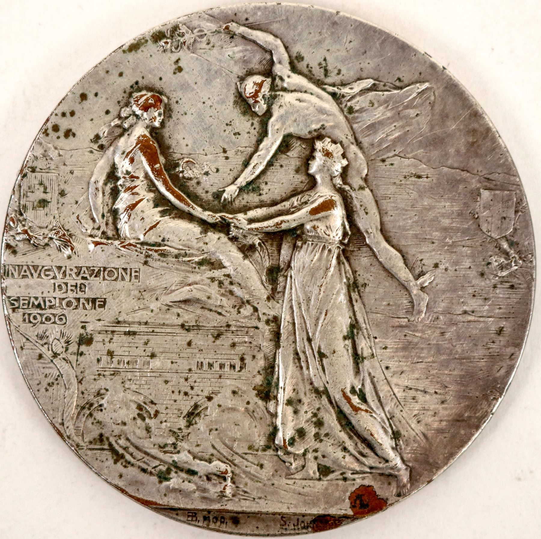Silver plated medal from the 1906 Milan Exposition. Round, 56 mm; 78.1 grams. Well worn, G-VG condition.