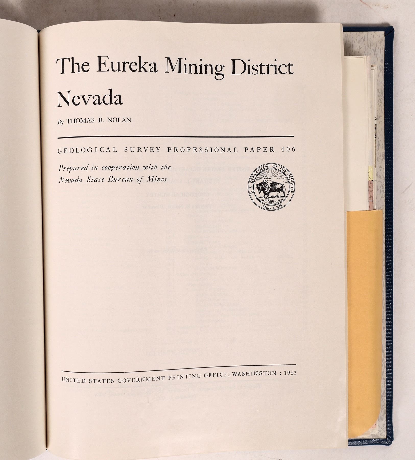 1884 The Miscellaneous Documents of the House of Representatives for the First Session of the Forty-Eight Congress, 1883-84, 200pp with index, some foxing. 1962 The Eureka Mining District by Nolan, 78pp with index, several color maps in back. Eureka Nevada