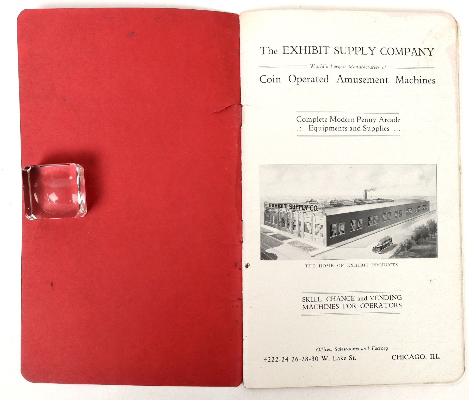 1928 Exhibit Supply amusement machines catalog. Center page is detached. 1 page mostly trimmed off. Please inspect.