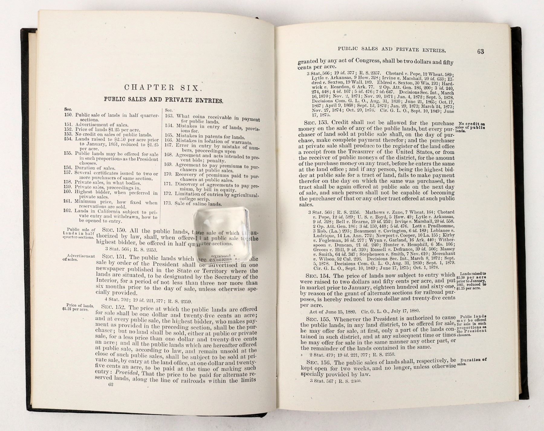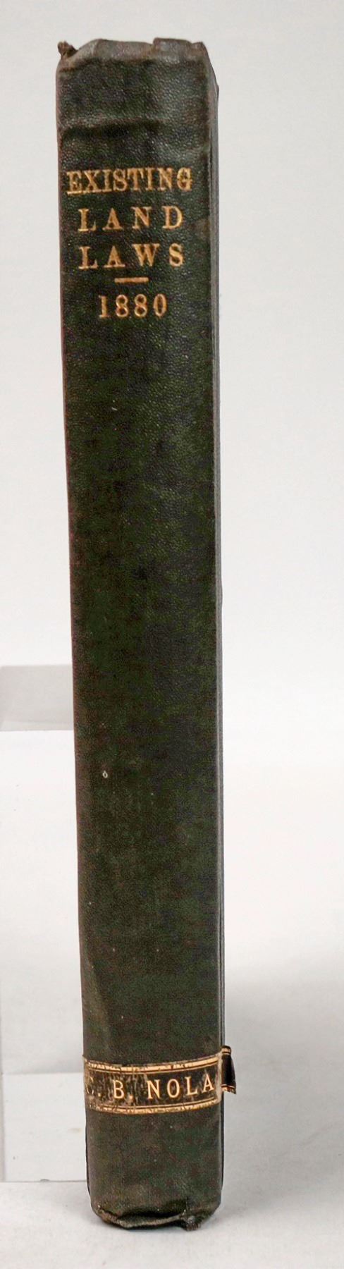 Existing Land Laws 1880, 1884 Edition. A fascinating report on land claims with authors such as R B Hayes, Secretary of the Interior etc.
