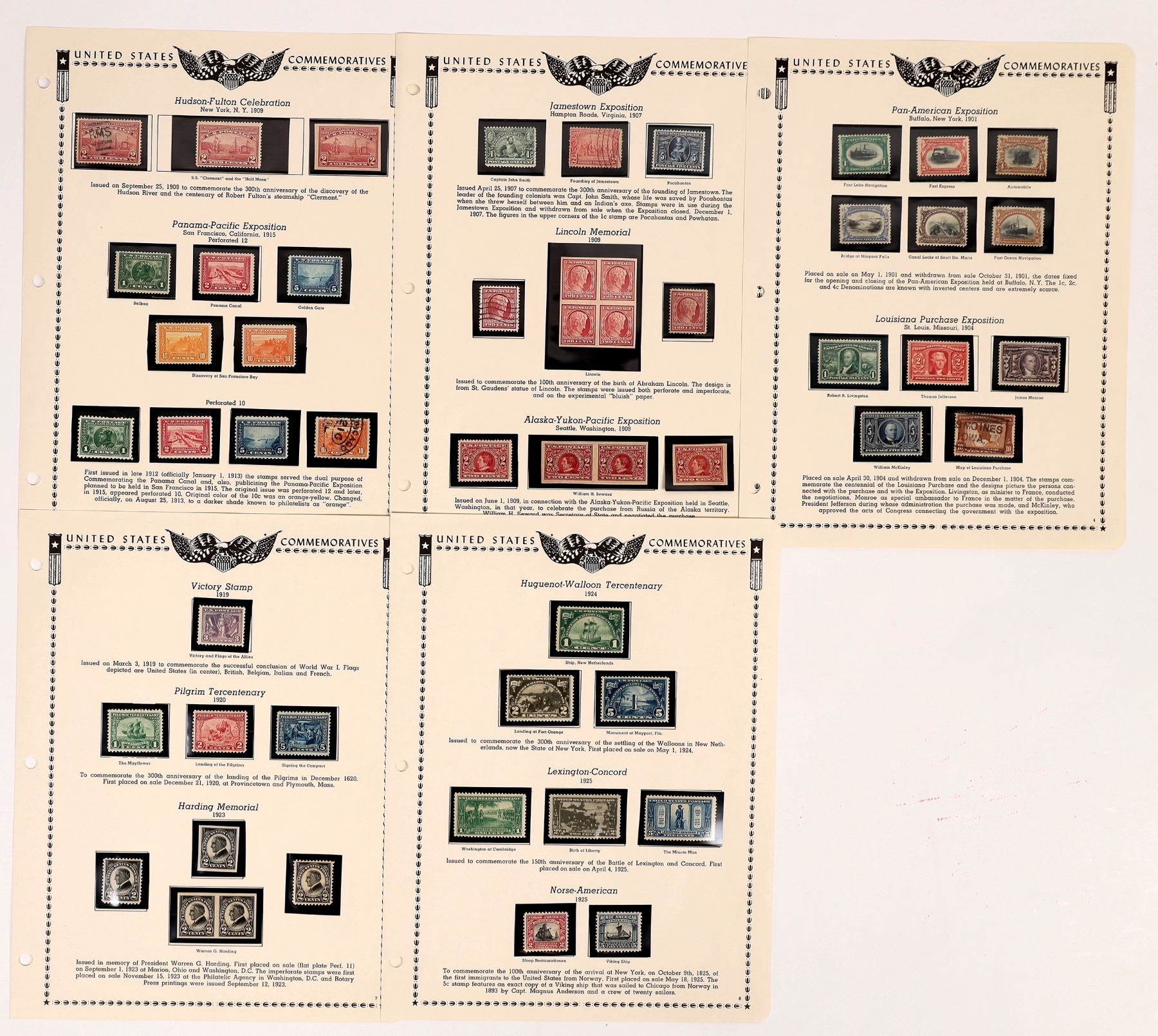 Group of 28 mostly Expo stamps. Pan-Am 1901-all mint, Louisiana Purchase 1904-all mint except 10c, Jamestown 1907, Lincoln Memorial 1909, Alaska-Yukon 1909-all mint, Hudson-Fulton 1909, Pan-Pac 1915 all mint except CM55. Also other issues from 1919 to 1925-all mint. Most nicely centered, on album pages.