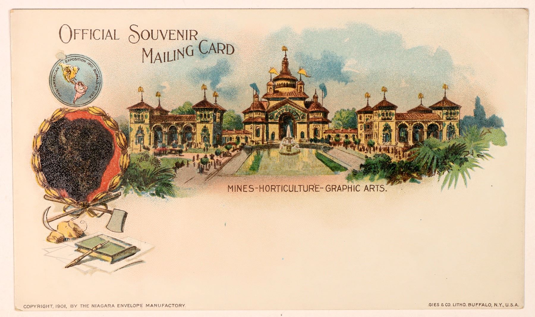 1901 Buffalo, NY Private Mailing Card with Mines-Horticulture-Graphic Arts buildings on obverse.