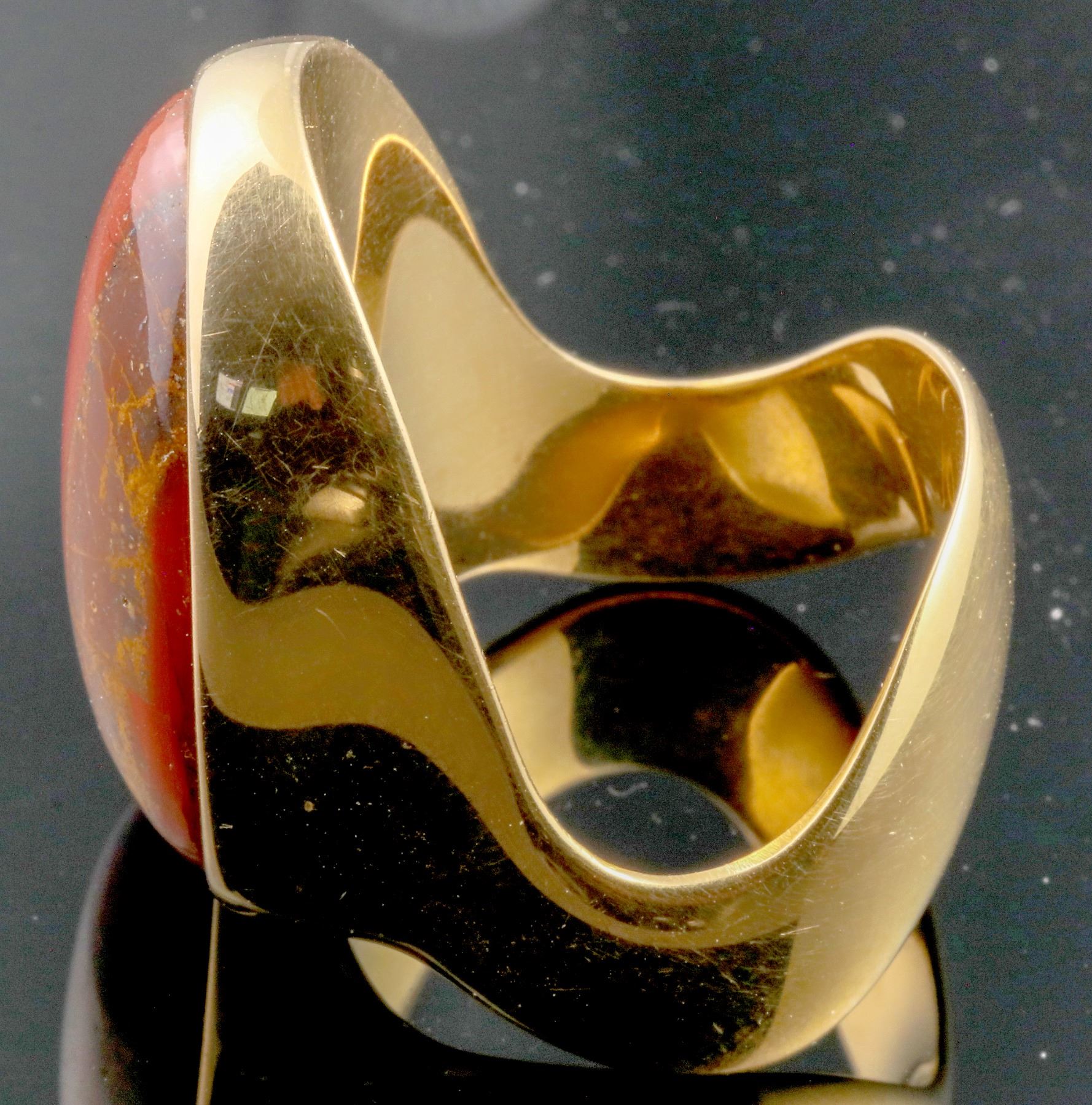 Custom gold and Australian ironstone gold ring, appx size 12 1/2. The gold was mined by "The Nugget Ace" and was specifically made for him with gold and ironstone that he mined. 42.6g gross weight, about 40g of gold, or 1.29 troy oz. gold. This was his "trophy" ring.