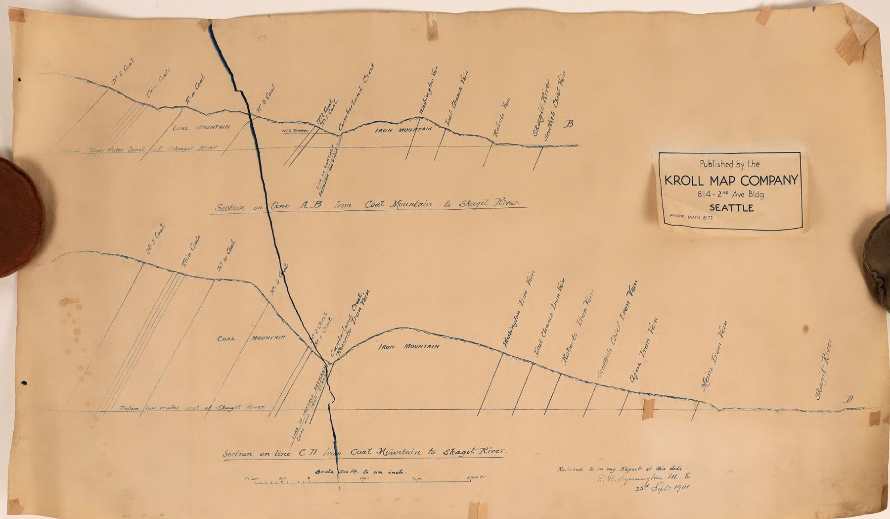 These two maps depict the mining area of Fair Haven in Kozebue Sound, Alaska; and the second map is of Coal Mountain to Skagit River. Drawn by R. B Symington ME 1901. Published Kroll Map co. of Seattle.
