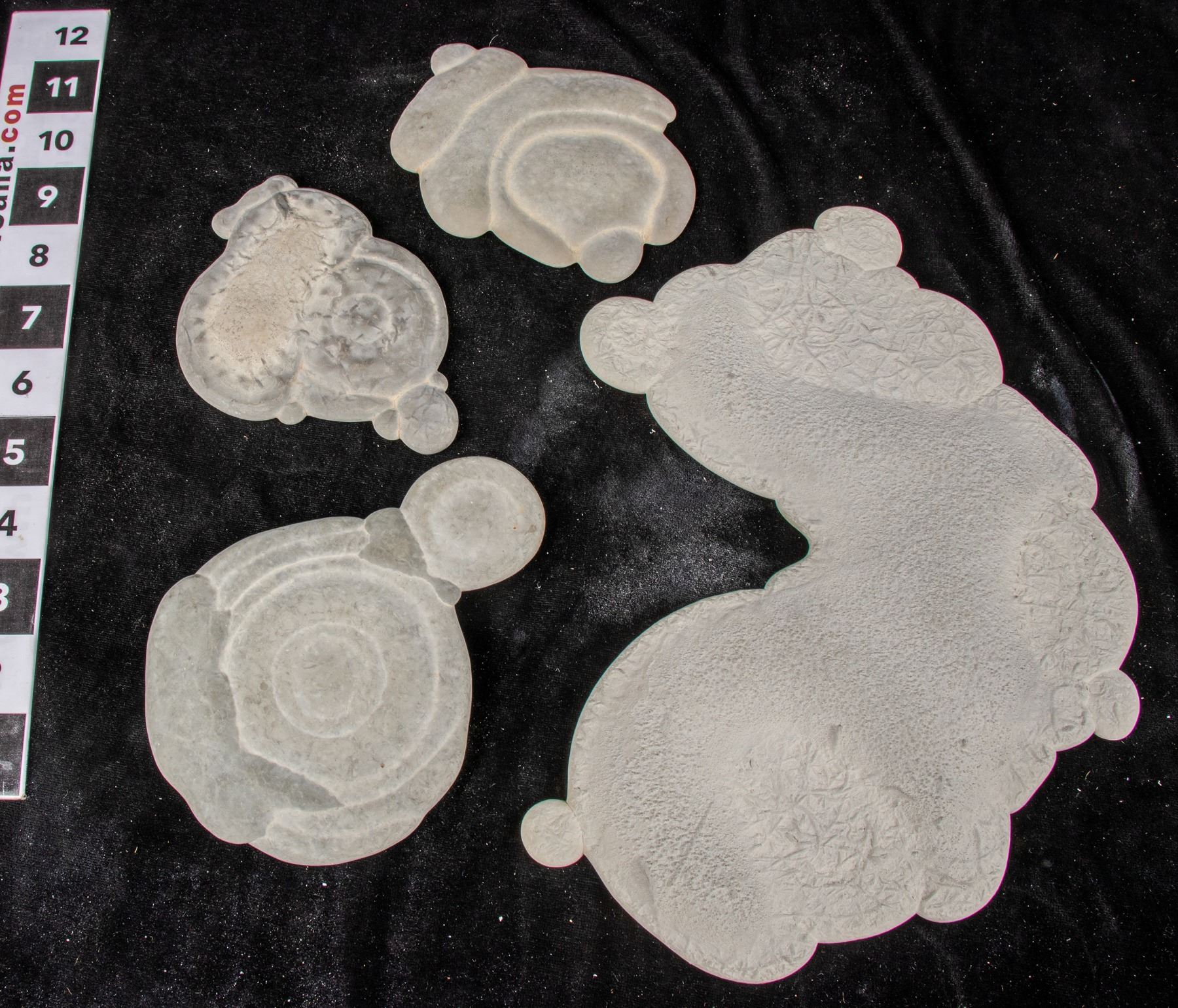 Natural, globular forms in thin light gray plates cemented by calcium carbonate State:Quebec City:Abitibi Date: Provenance: Chunlin Zhu Collection