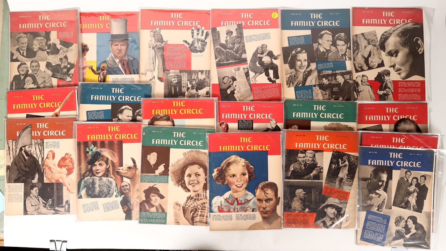 Family Circle Magazine covers from the 1930s and 40s, featuring movie stars like Shirley Temple, W.C. Fields, Fred Astaire, Dorothy Lamour, Bing Crosby and others. A great piece of Hollywood's Golden Age. Please see photos for more details. California Hollywood 1930s-40s