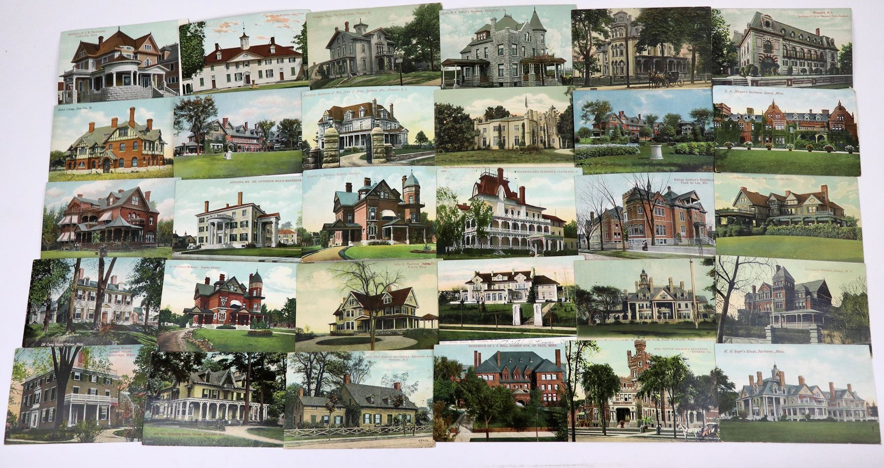 Postcards of Residences of Prominent Americans (30), mostly from New England states, with their interesting architectural designs of the late 1800s & early 1900s. This group of cards represents that period. City: State: Date: