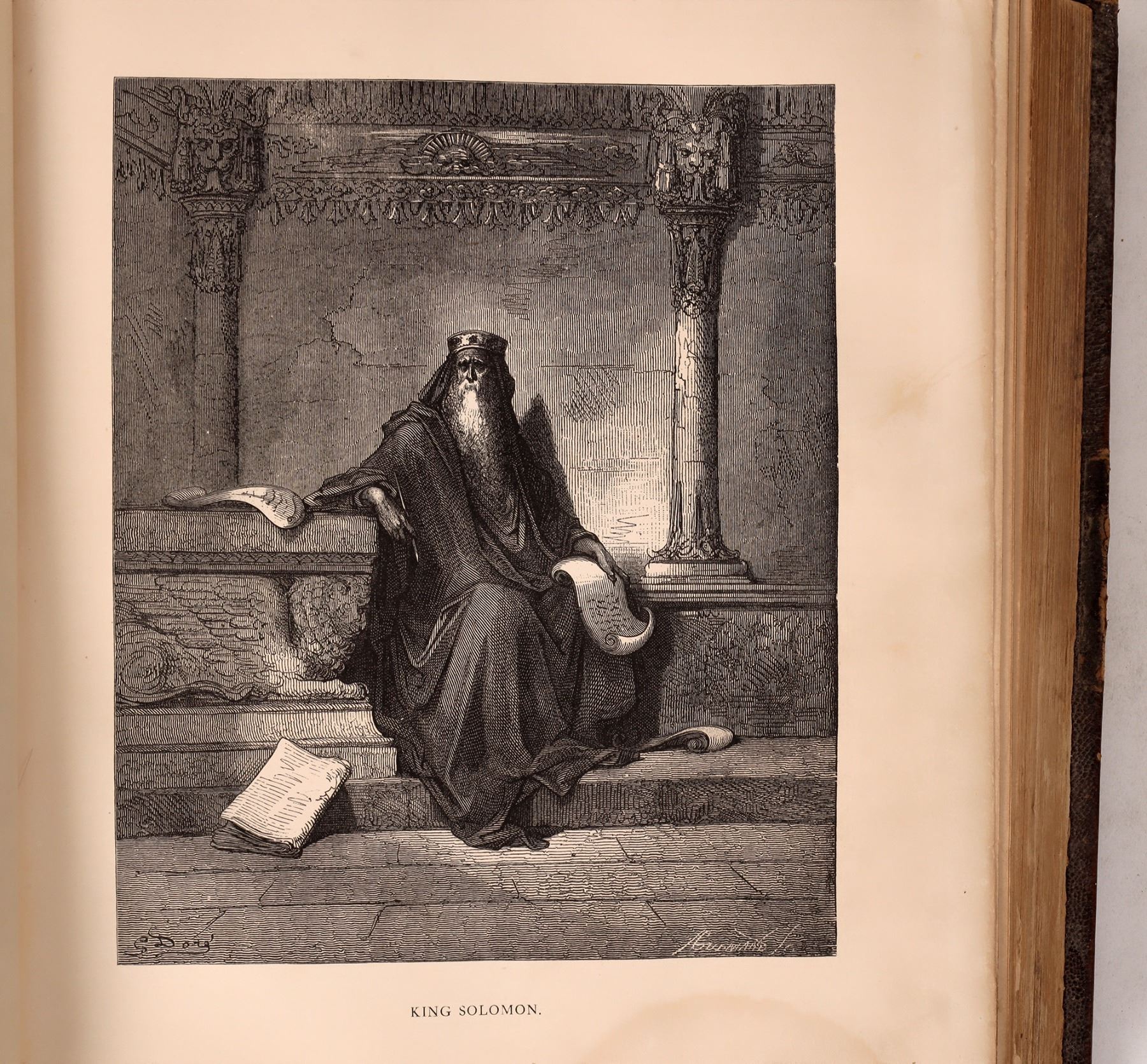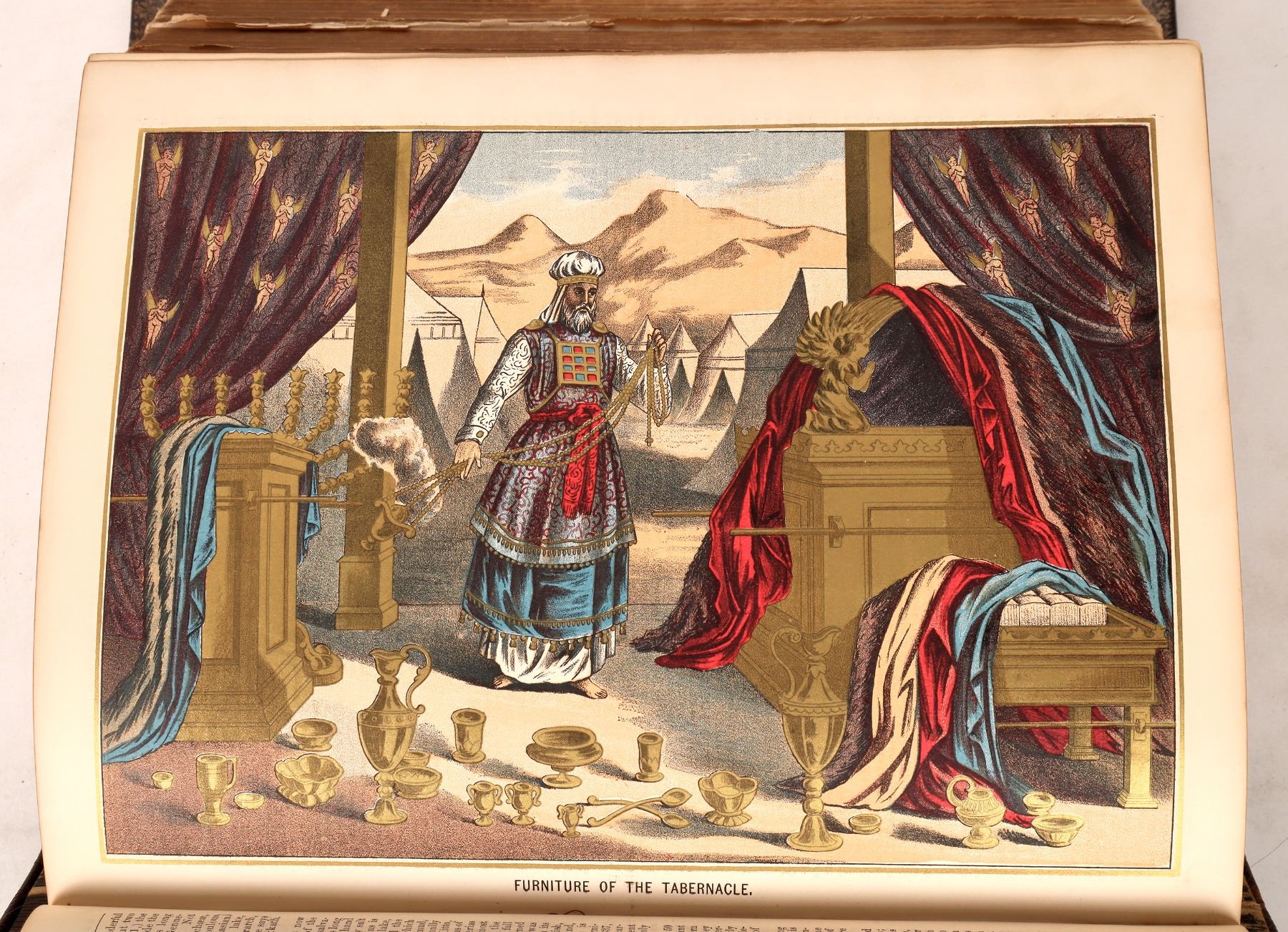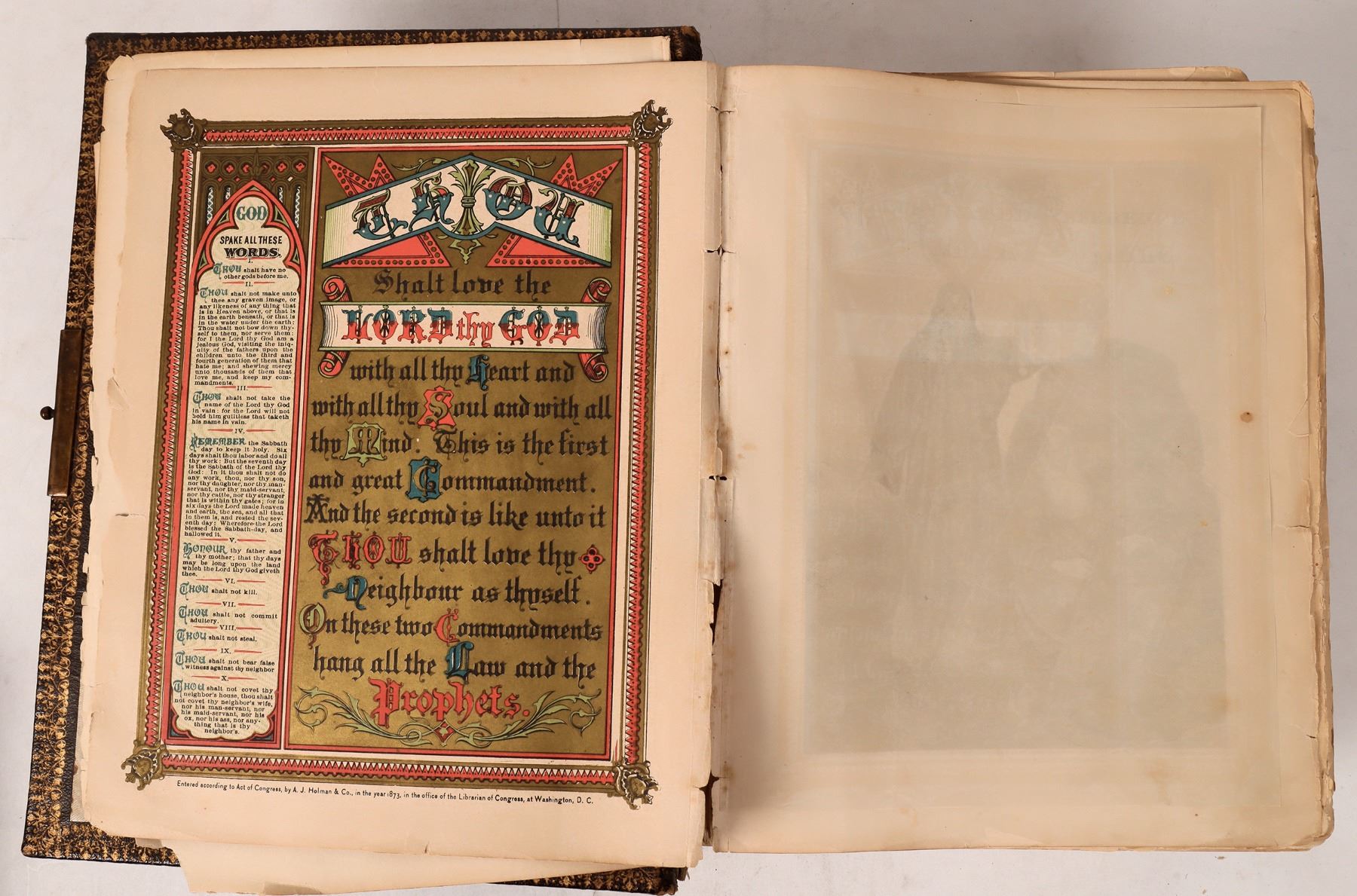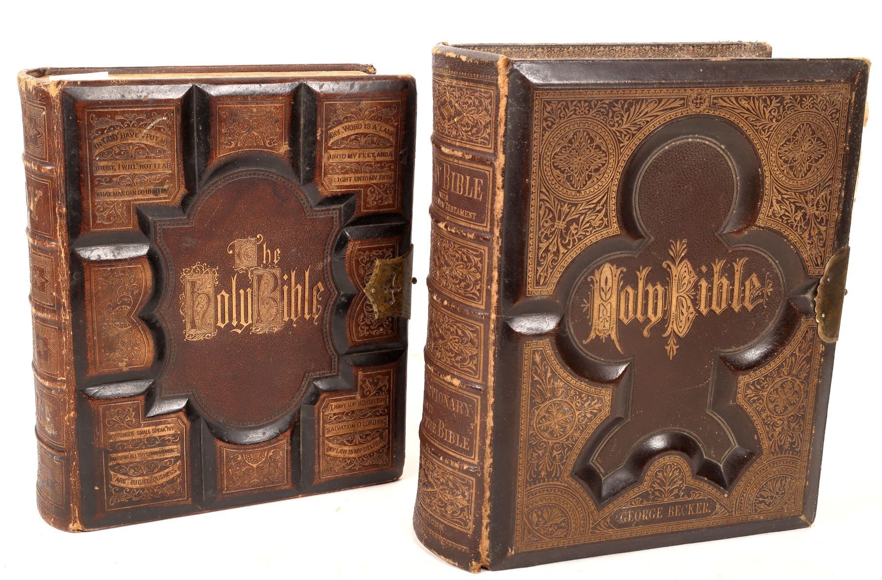 2 fancy New Testament bibles, c. 1870's. One with a color litho, the other a steel engraving. 11x10".