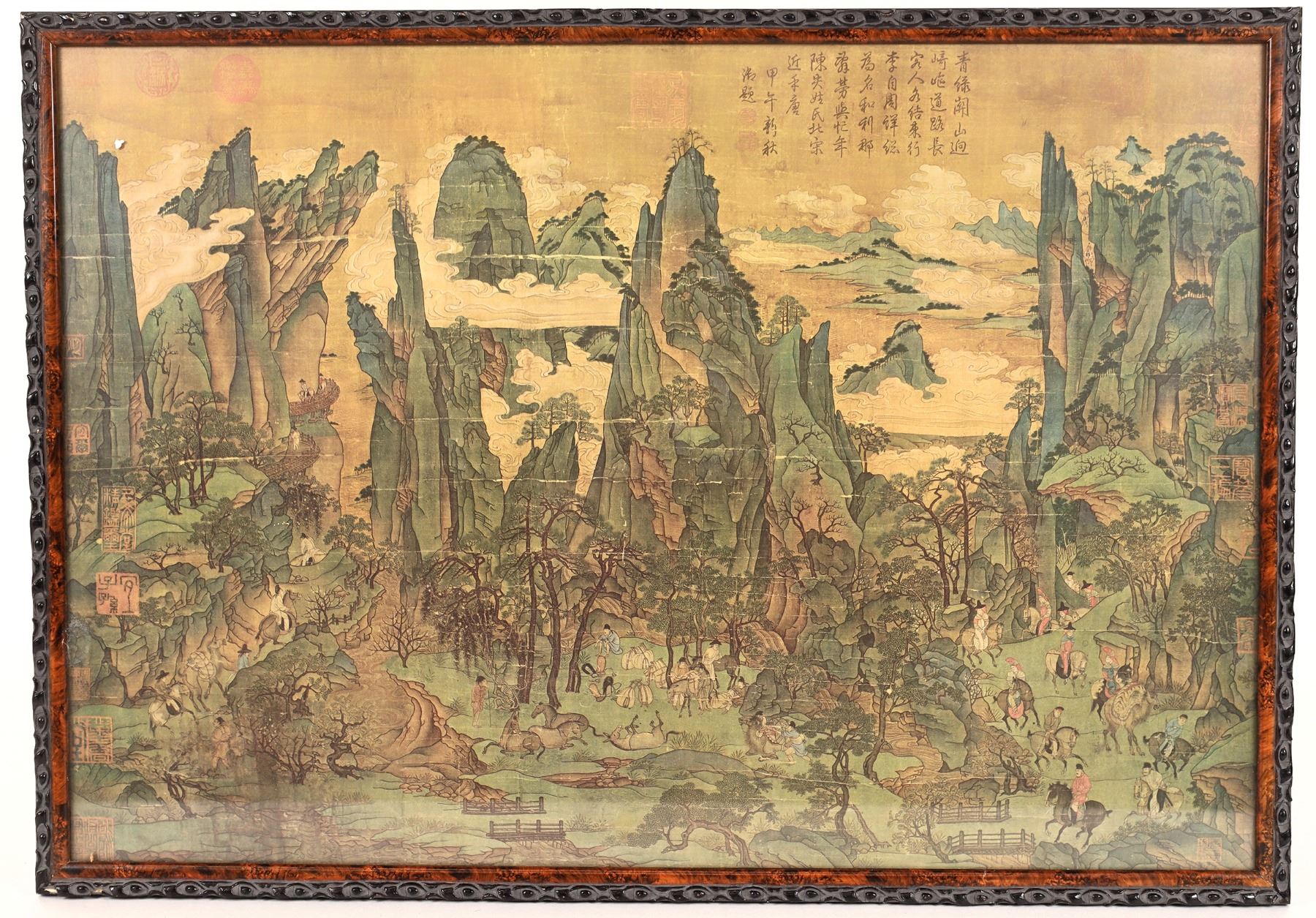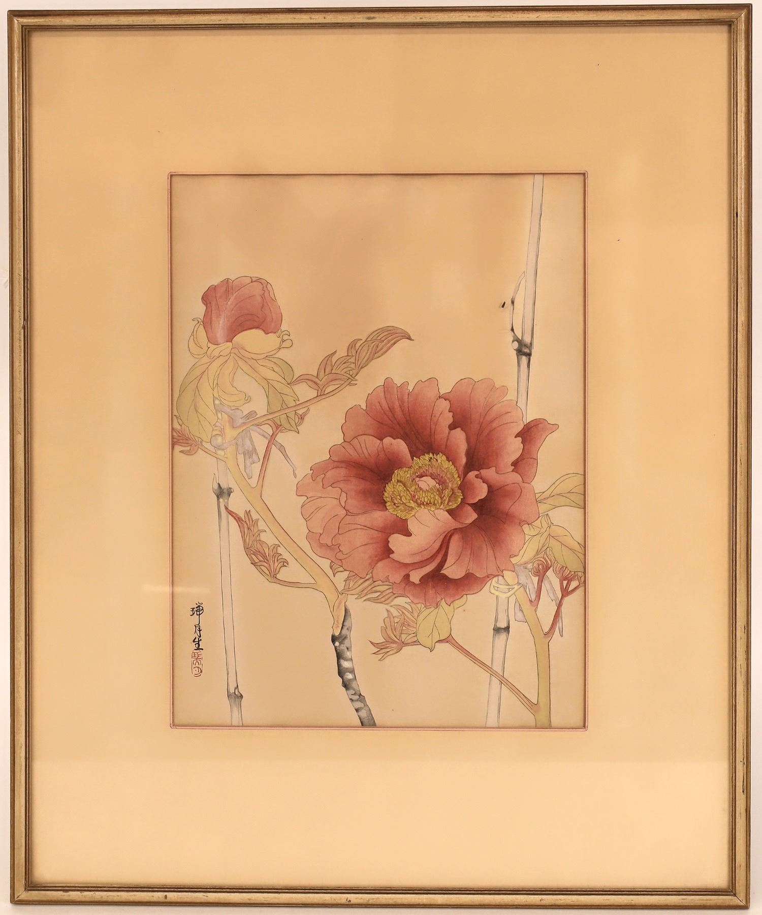 Lot of three. Two original far eastern art pieces and a third print. These three beautiful works of art were the property of Bell Northrop Art professor of Columbia in New York who was a victim of McCarthyism never allowed to teach again. Ms. Northrip was a very popular professor who collected ancient textiles and wrote a manuscript on it that was never published because of the McCarthy era problem. Fred and Chris Holabird inherited these which were cherished by Ms. Northrop in her passing in 1980. 19 x 22" approx. size of all 3.