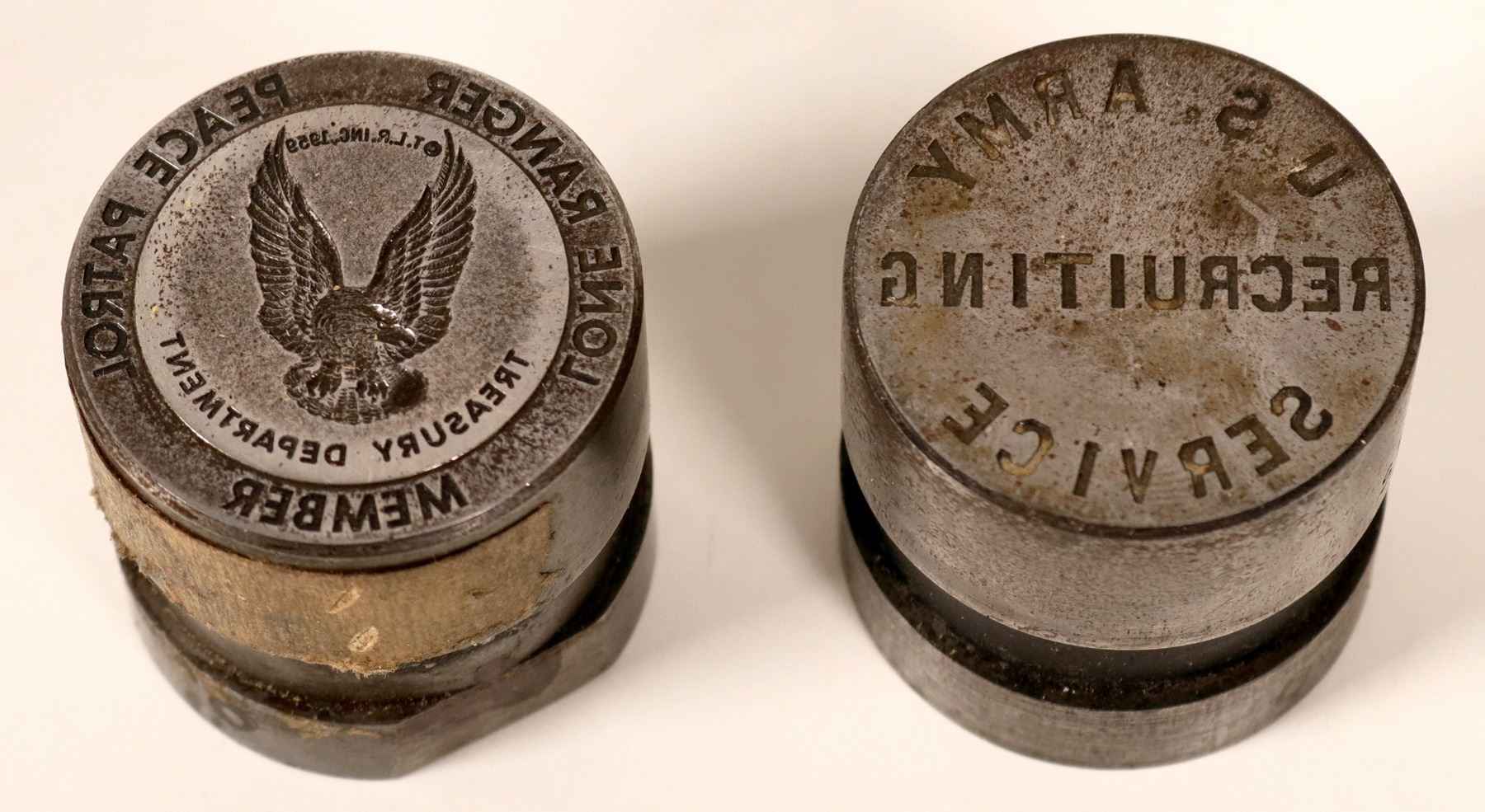 Lone Ranger Treasury Dept. US Army recruiting dollar sized dies from the Northwest Territorial Mint Historical Die Collection. Other NWTM dies can be found in the Mining Section of this Auction.