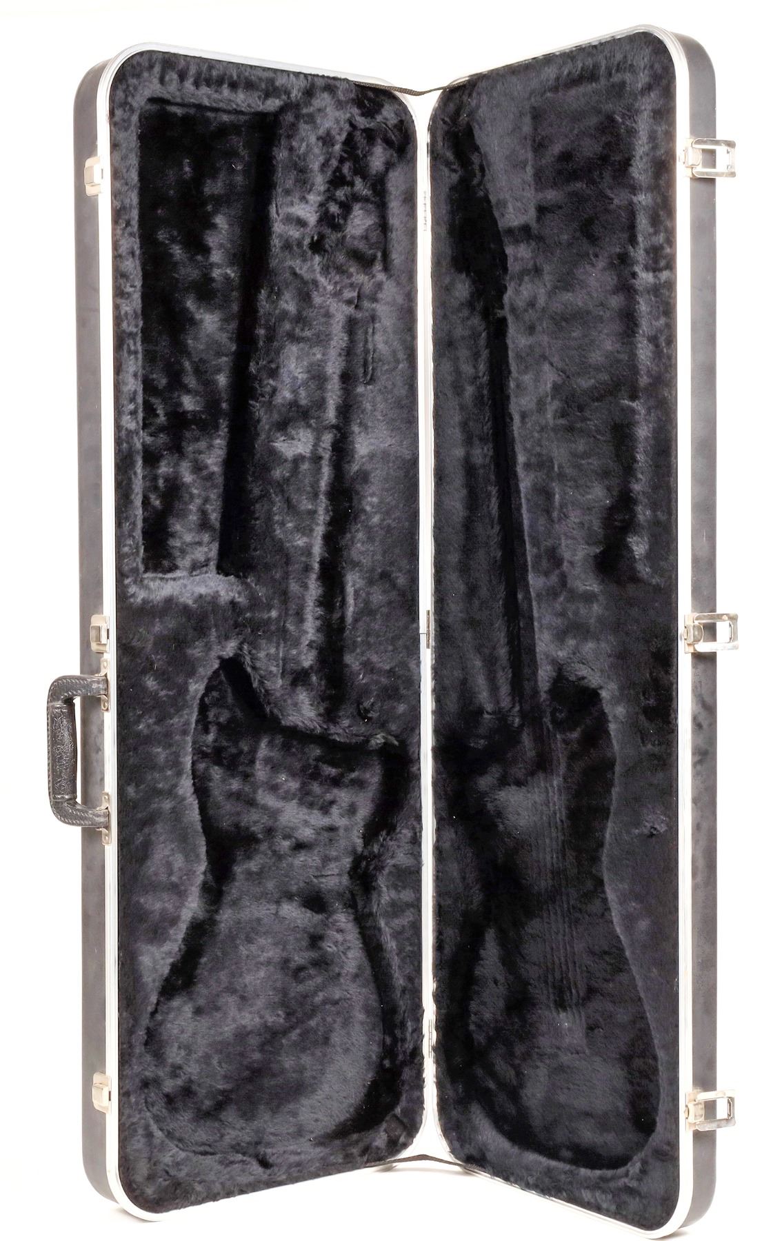 Fender hard case for a Stratocaster, 14.5x41", 9 lbs. Semi hard acoustic guitar case, 19x42", 7 lbs.