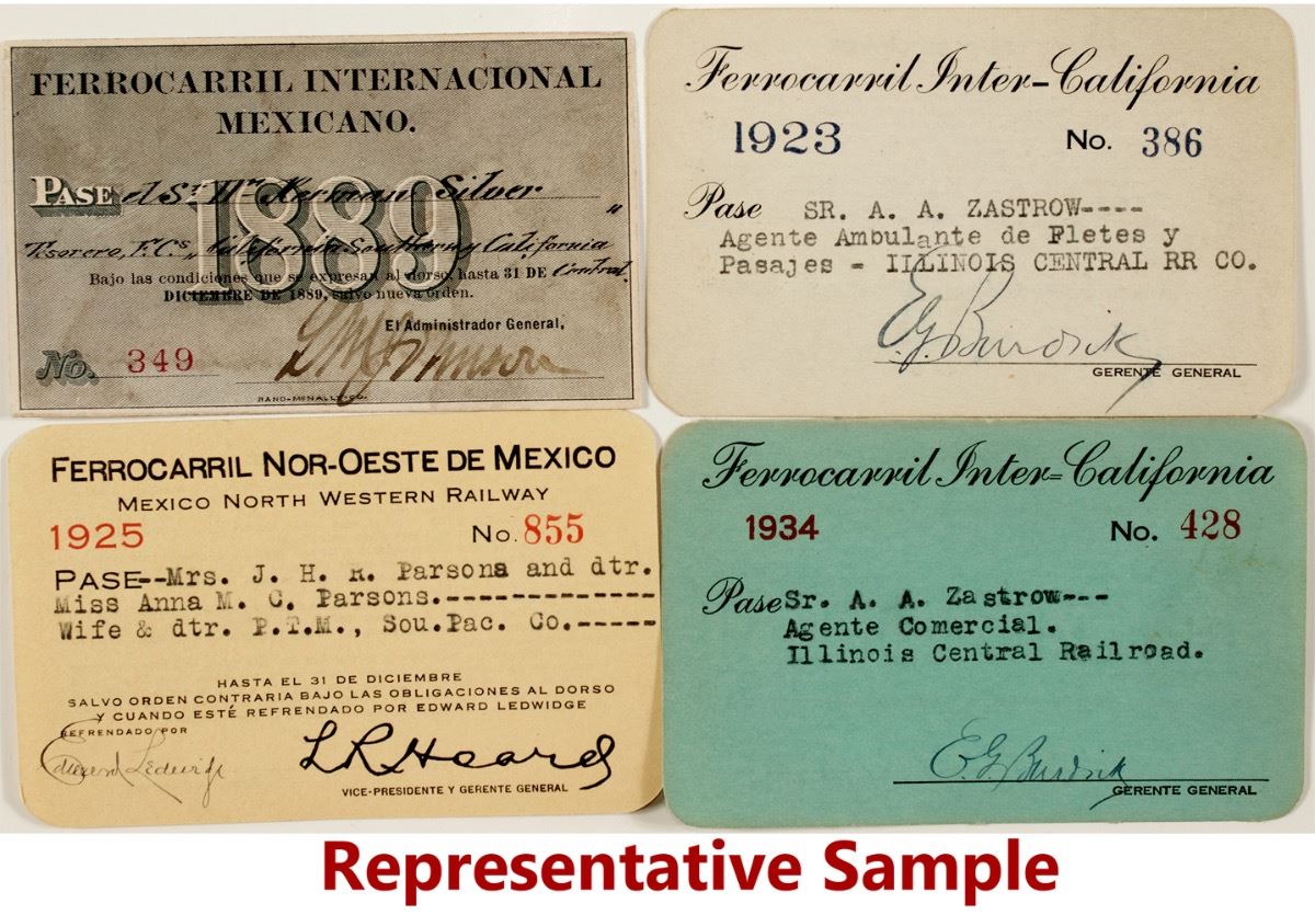 Twenty-four passes, including an 1889 Ferrocarril Internacional Mexicano pass. 1923, 1925, 1927, 1928, 1929, 1930, 1931 (2), 1932 (2), 1933 (2), 1934 (2), 1935 (2), 1936 (2), 1937 (2), 1938 (2), and 1940. Prag Collection City: State: Mexico Date: hwac# 23265