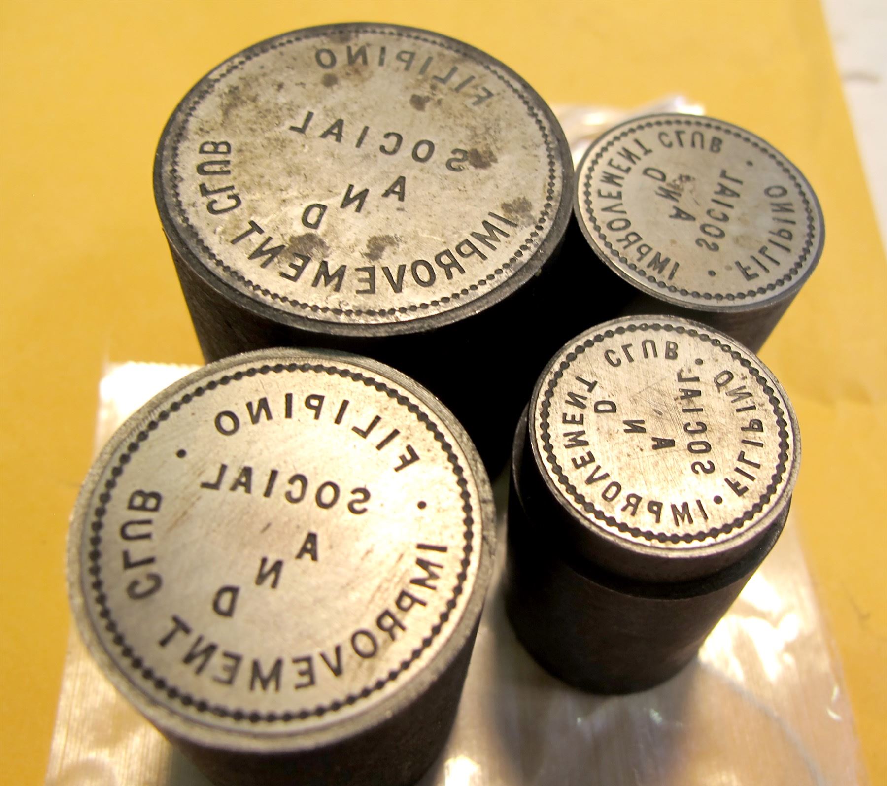 Lot of four: Filipino / Social / and / Improvement Club; 21, 24, 30 & 37 mm. NWT Mint Historic Die Collection. State: Foreign City: Date: HWAC# 86327