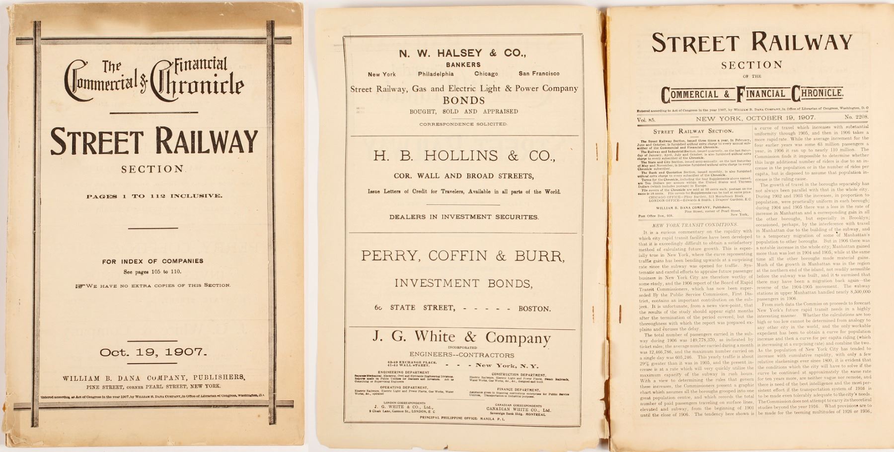 Rare rating service for Street Railways Section. 112 pp. Slight staining at top of book. 13" x 8.5".
