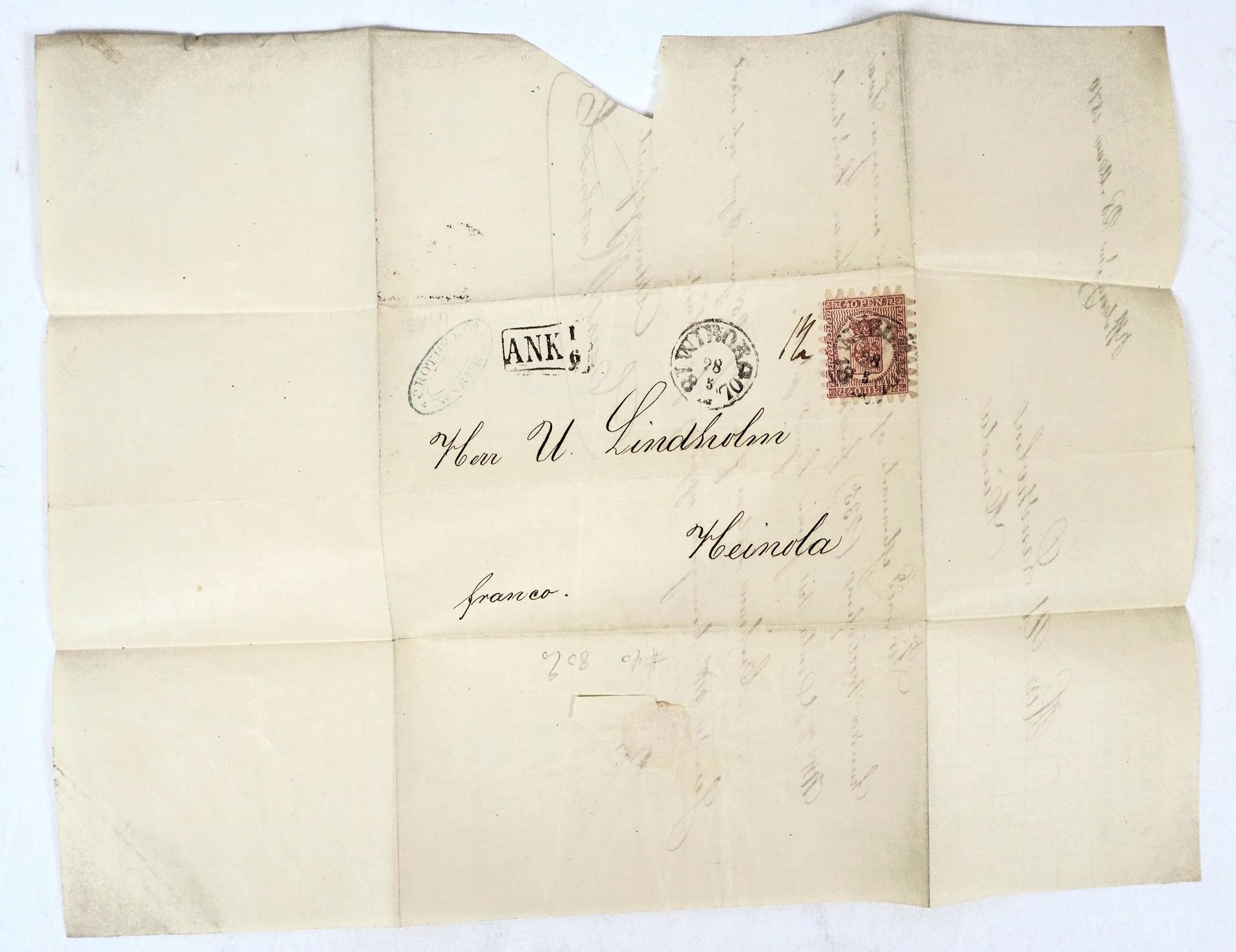 Finland 1870 lettersheet to Heinola franked with 1866 40p (Roulette III, Scott #10, one short tooth, otherwise perfect, rare thus) tied by Wiborg datestamp with additional strike alongside, striking showpiece.