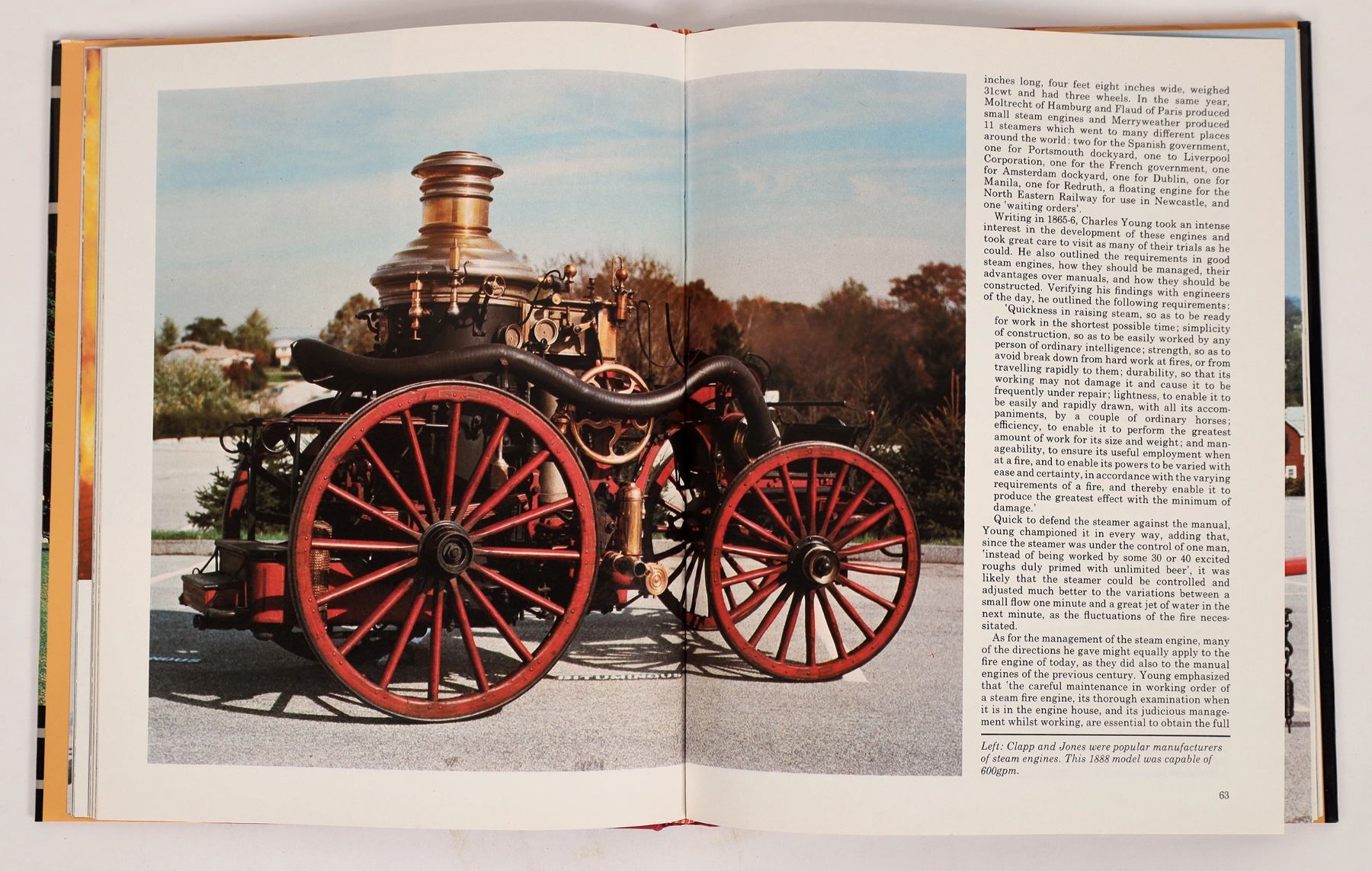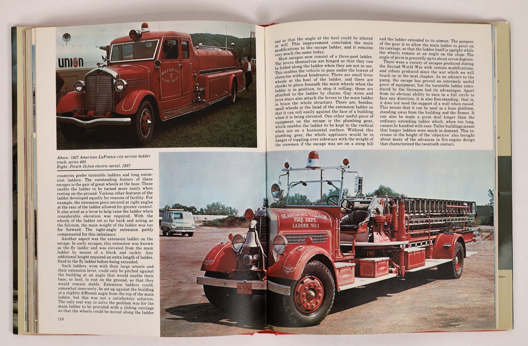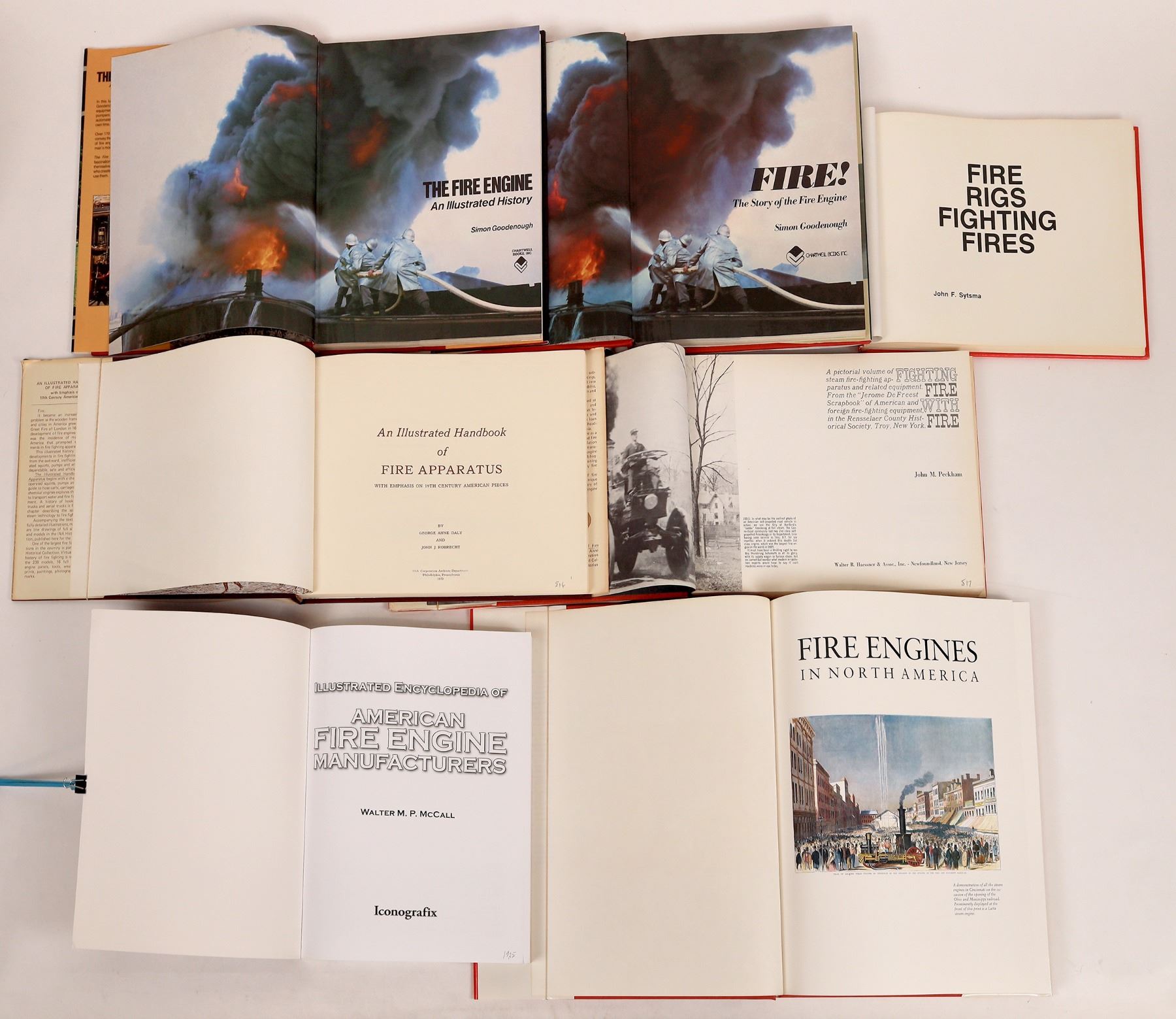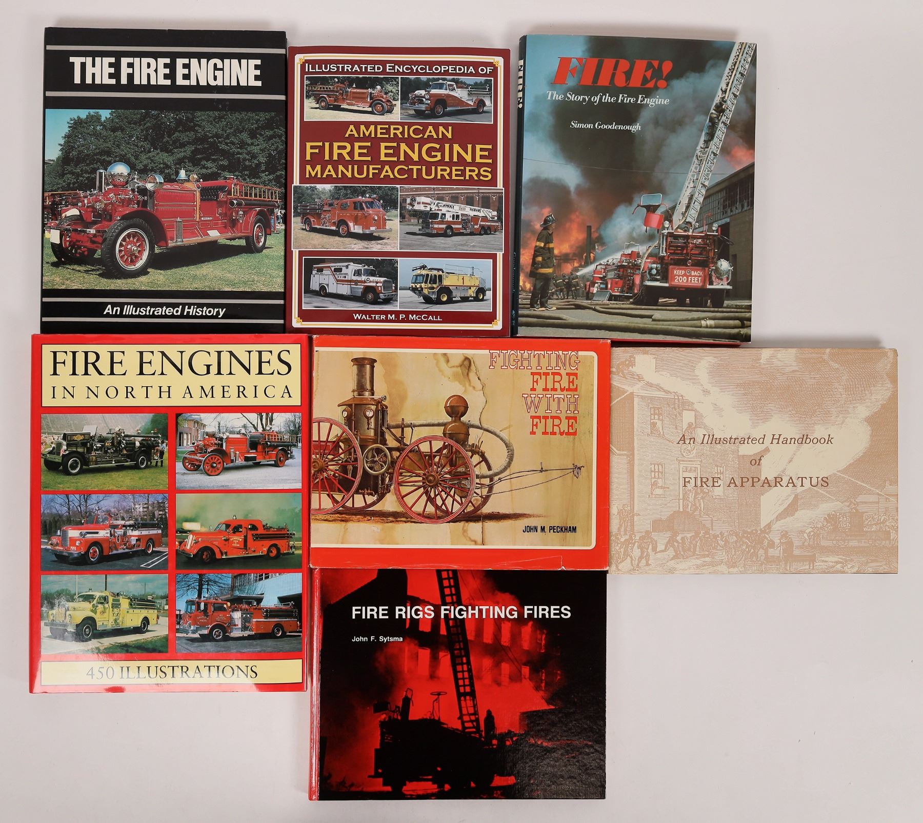 Books on Fire Fighting Apparatus, Old & New (7). 1) "The Fire Engine", An Illustrated History, by Simon Goodenough, Cartwell Books, 1987. (Color and B&W, 9" x 11-1/2" HB, 160 pages). 2)"Fire Engines in North America", by the Wellfleet Press, Secaucus, N.J., 1991. 450 illustrations. (10" x 13" HB., 256 pages). 3) "Fire", the Story of the Fire Engine, by Simon Good enough, Cartwell Books, 1978. (9" x 11-1/2" HB, 160 pgs.). 4) "An Illustrated Handbook of Fire Apparatus", with emphasis on 19th Century American Pieces, by Daly and Robrecht, publ. by INA Corp., 1972. (11" x 8-1/2" oblong HB, 127 pages). 5) "Fighting Fire with Fire", by John M. Peckham, 1972. 240 pages of the world's finest & most unusual steam fire-fighting apparatus (8" x 11-1/2" oblong HB, 231 pgs.). 6) "American Fire Engine Manufacturers", Illus. Encyclopedia, by Walter M. P. McCall, publ. by Iconografix, Hudson, Wis., 2009. (8-1/2" x 11" SC, 304 pages). 7) "Fire Rigs Fighting Fires", by John F. Sytsma, 1982. (11" X 9" oblong, HB, 160 pages).