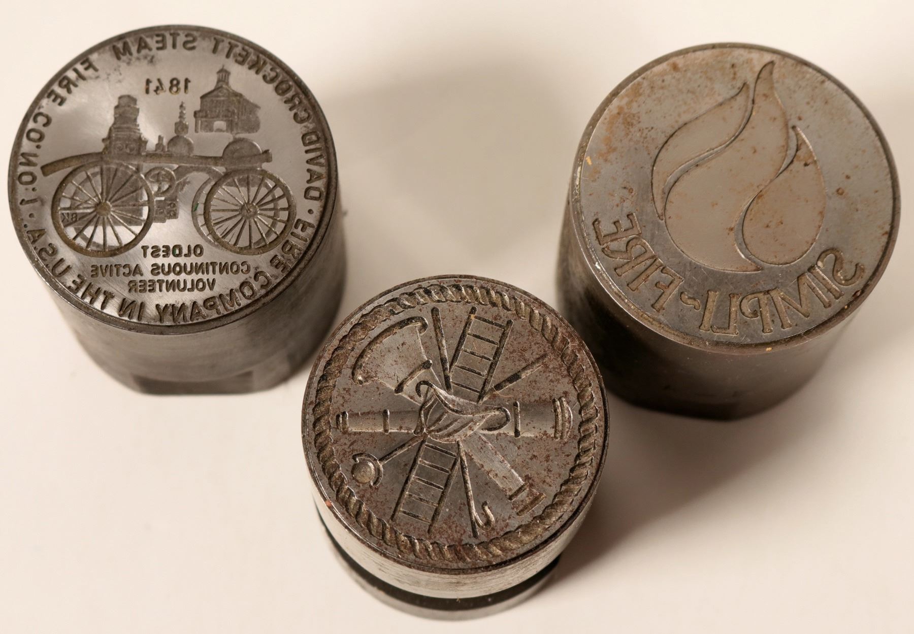 Three fire related dies for the Fire collector. From the Northwest Territorial Mint Historical Die Collection.
