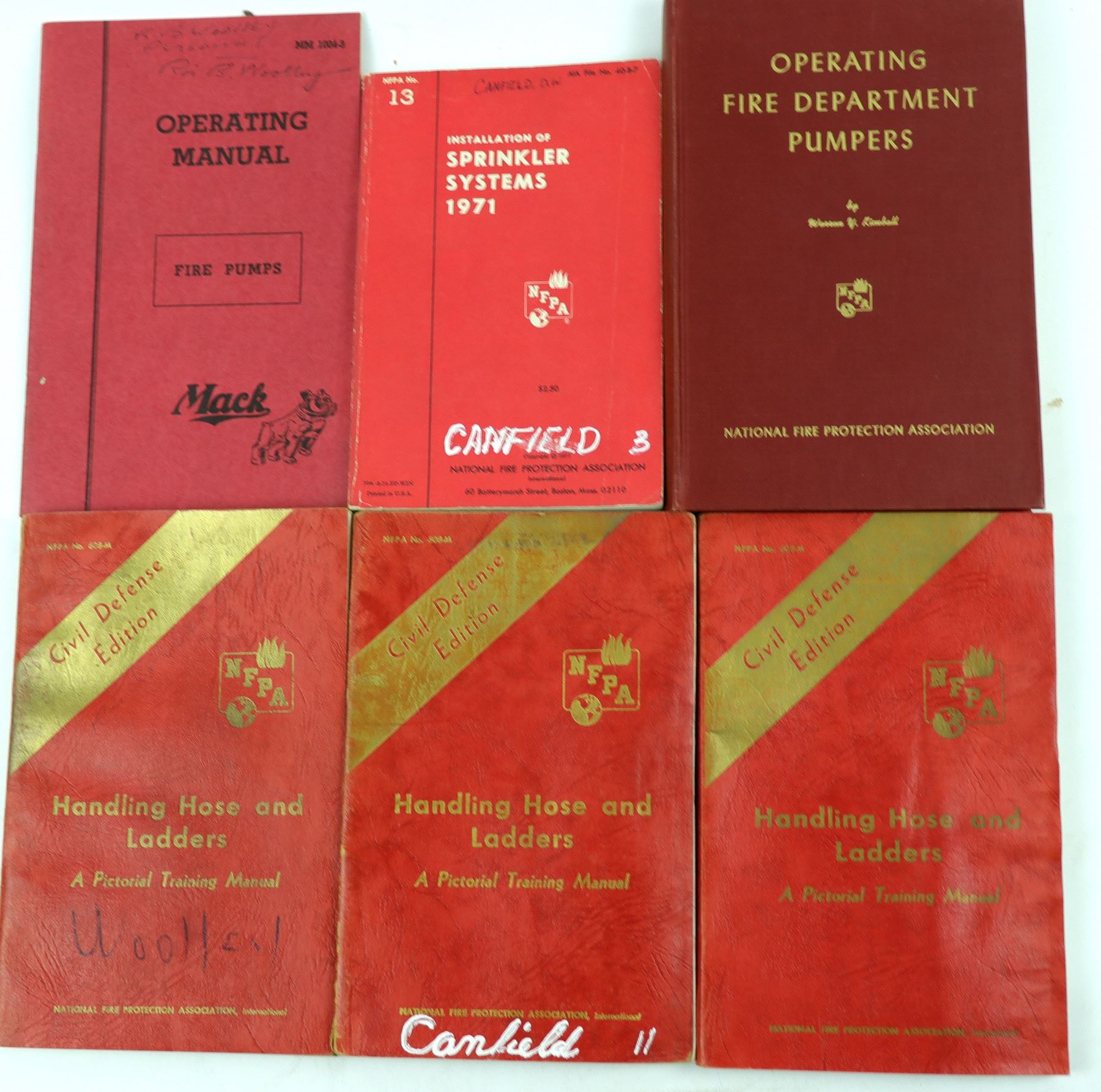 A) Operating Fire Department Pumpers by Warren Kimball. Issued by the National Fire Protection Association in 1923. 8.5 x 5.75, 145 pages, good condition.