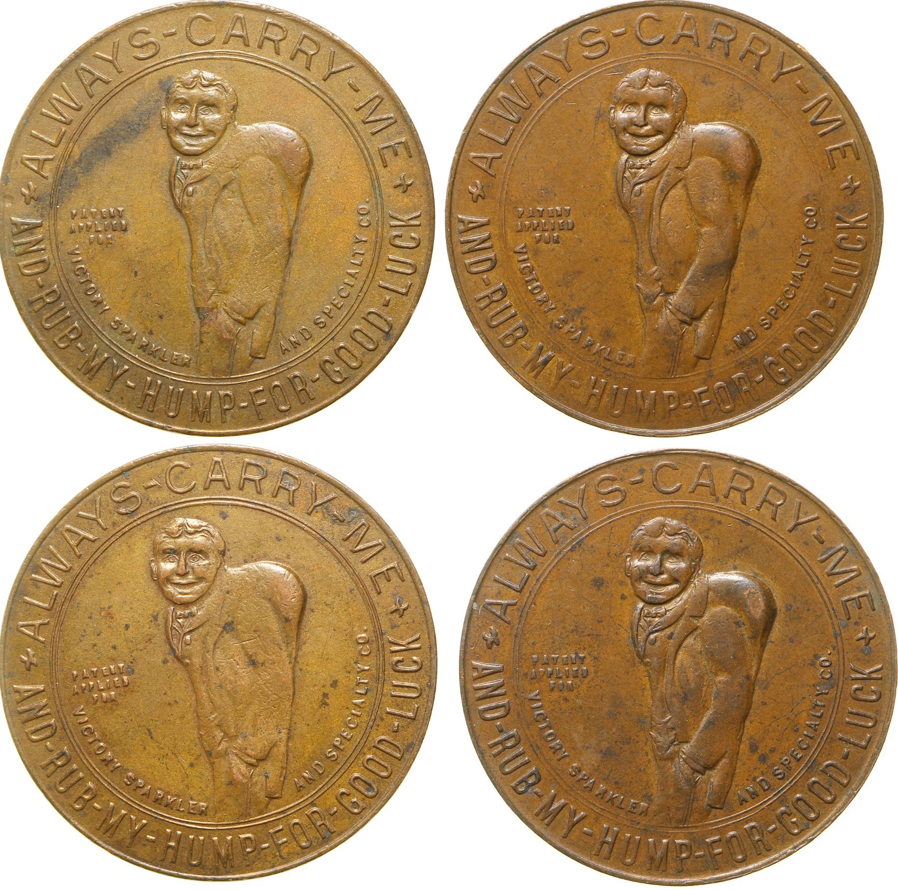 Two good luck tokens issued by the Victory Sparkler and Specialty Co. Bronze, 35 mm. Salvatore Falcone Collection.