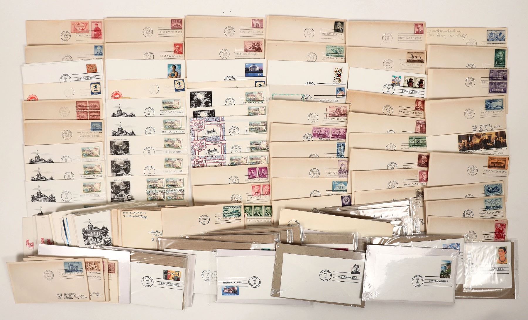 Around 75 to 100 first day covers with U.S. postmarks. Also includes unusual covers like certified and airmail. In nice condition. Please see photos for more details.