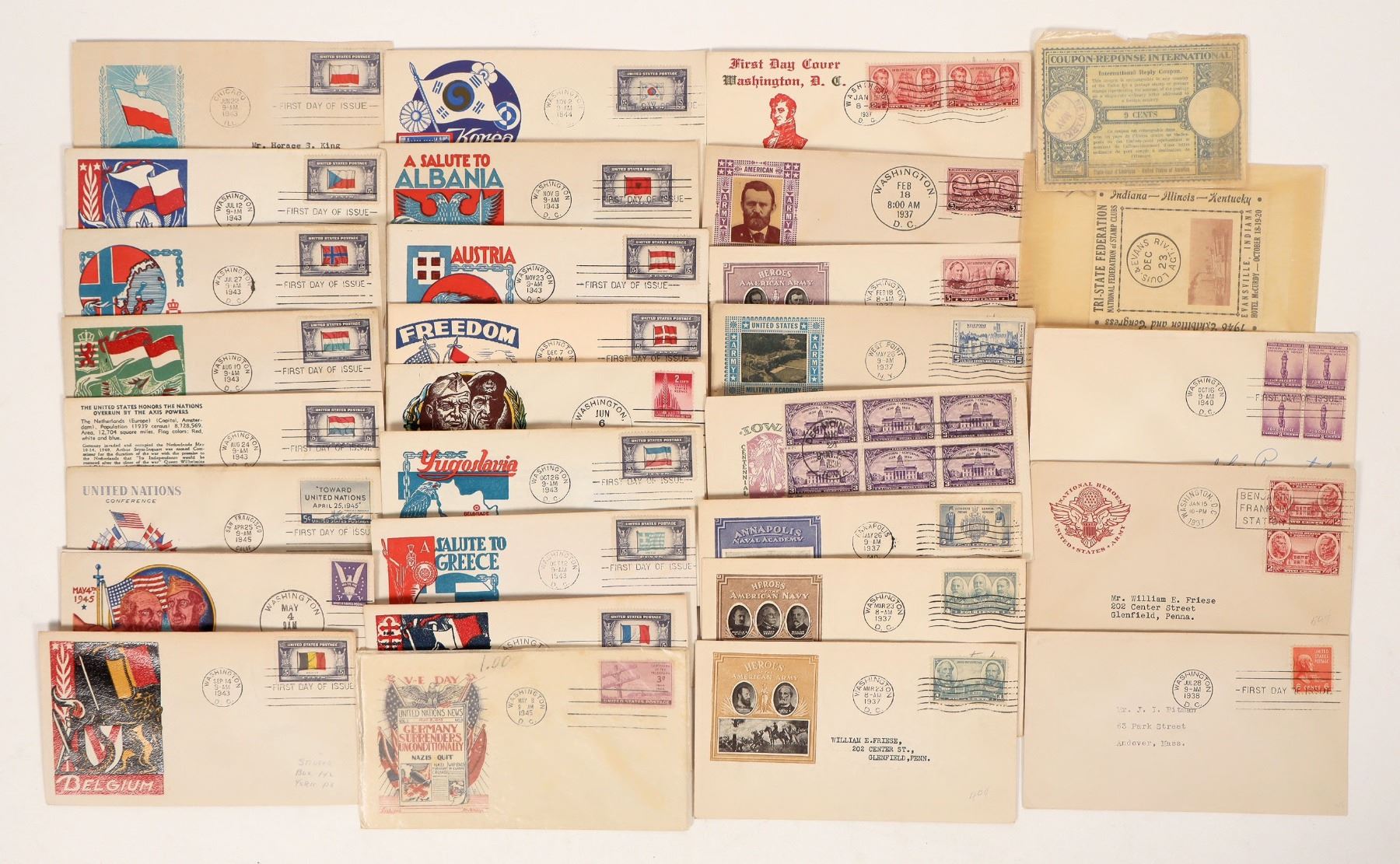 This group of first day postal covers include political messages from the USA and Europe. There are 30 covers in all. There is June 6th, 1941 D -Day in Europe. October 16th, 1940 was R-Day for registration for the draft in preparation of US troops into WW2. Please see photos for related country desires for freedom.