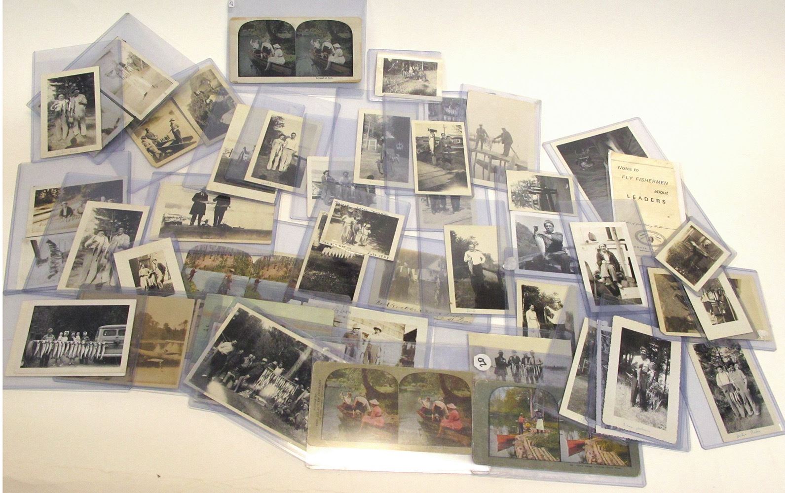 46 original photos and 1 pamphlet. Includes snapshots, stereoviews, original postcards. All mostly postcard size or smaller. Lots of fish, many on loaded stringers. Date: Location: HWAC# 57270