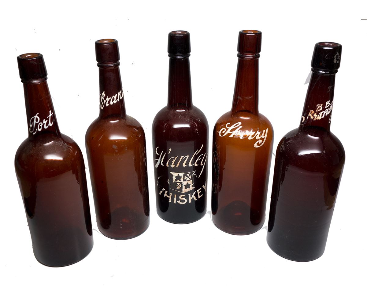Marked white script: "Brandy", "Sherry", "B. B. Brandy", "Hanley Whiskey", and "Port".