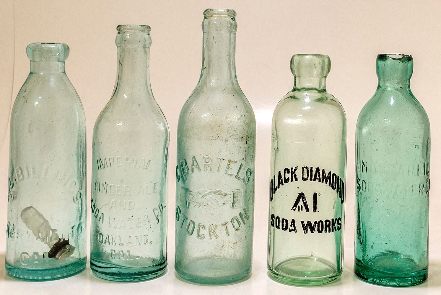 Five Central California, coastal region soda bottles. Black Diamond Soda Works, aqua, Hutch soda bottle dead mint. Nonpareil Soda Works, SF, Hutch soda bottle, chip. Billings, Sacramento. Imperial Gingerale, Oakland, aqua, Crown top. Bartell, Stockton, aqua, Crown top. HWAC# 47611 Date: Location: California