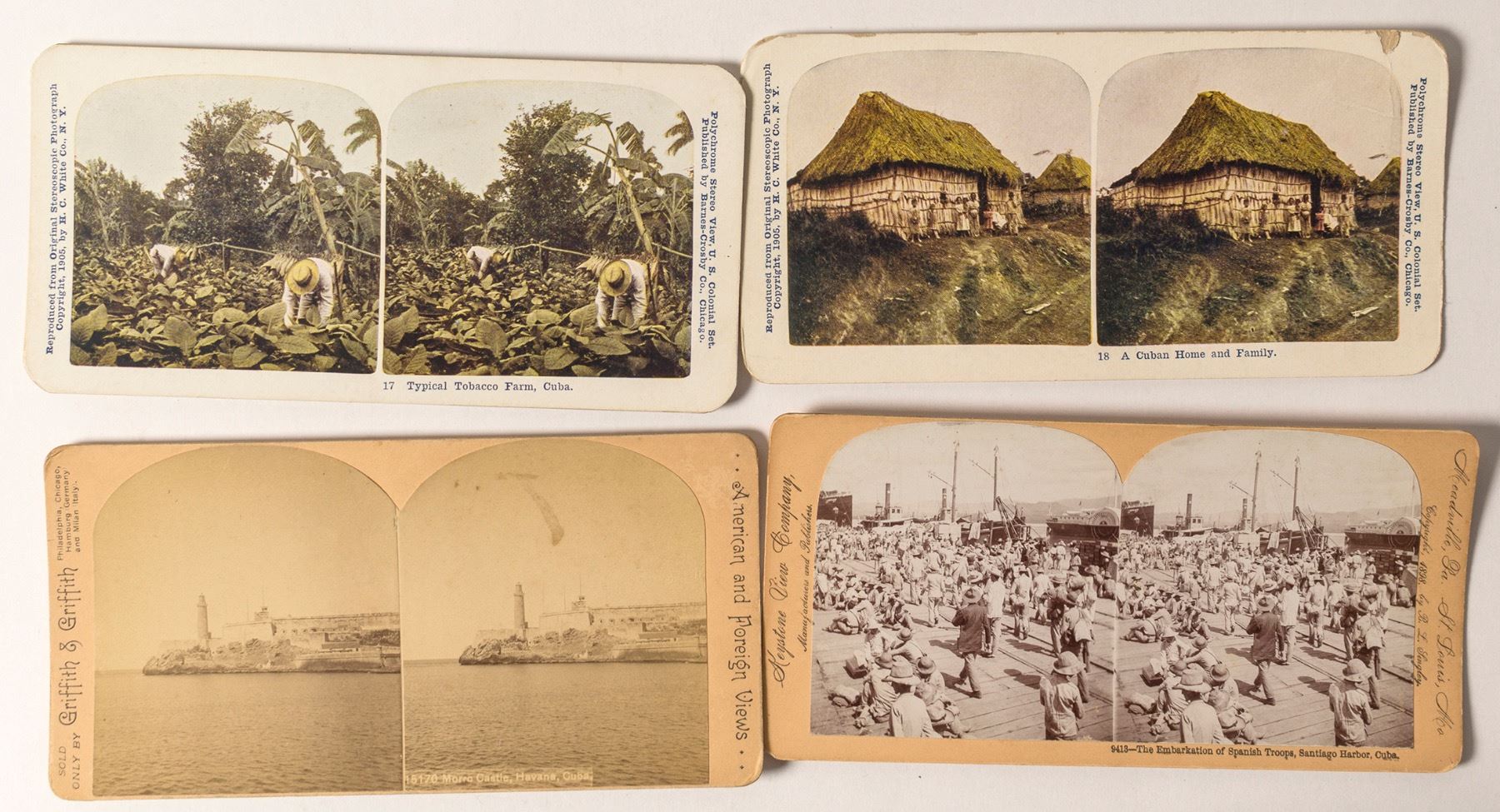 Lot of 5 different. Best shows the embarkation of Spanish Troops at Santiago Harbor (c.1898). Also: Morro Castle in Havana (Griffith & Griffith); and three c.1905 by HC White & Co. showing a tobacco farm, central park in Havana, and a cuban home and family. (Prag Collection) Date: Location: zCuba HWAC# 54758