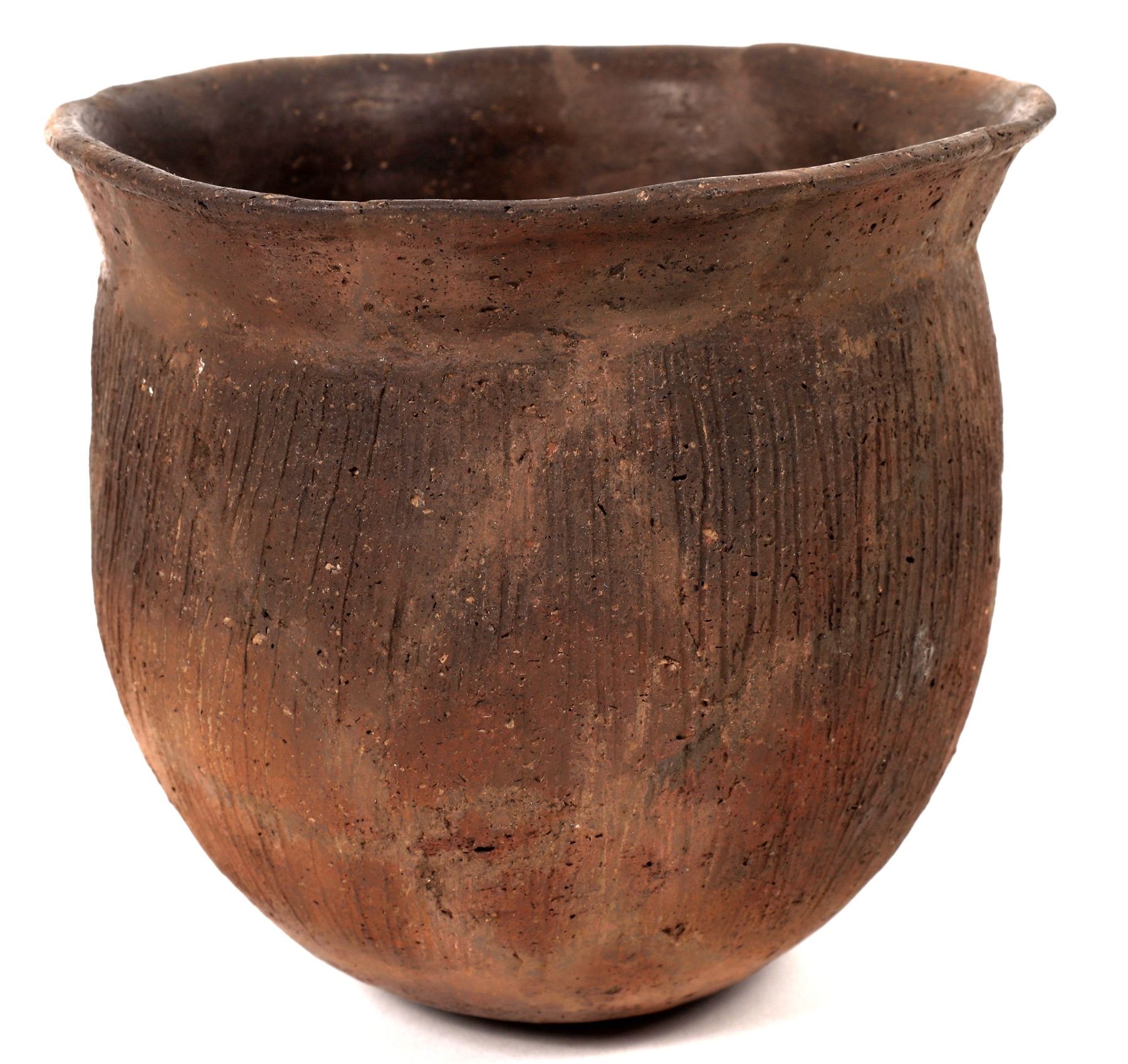Ancient Caddo flared jar, deeply incised. c. 1400-1600, Red River Drainage area, 5"x5.5". Professionally reconstructed.