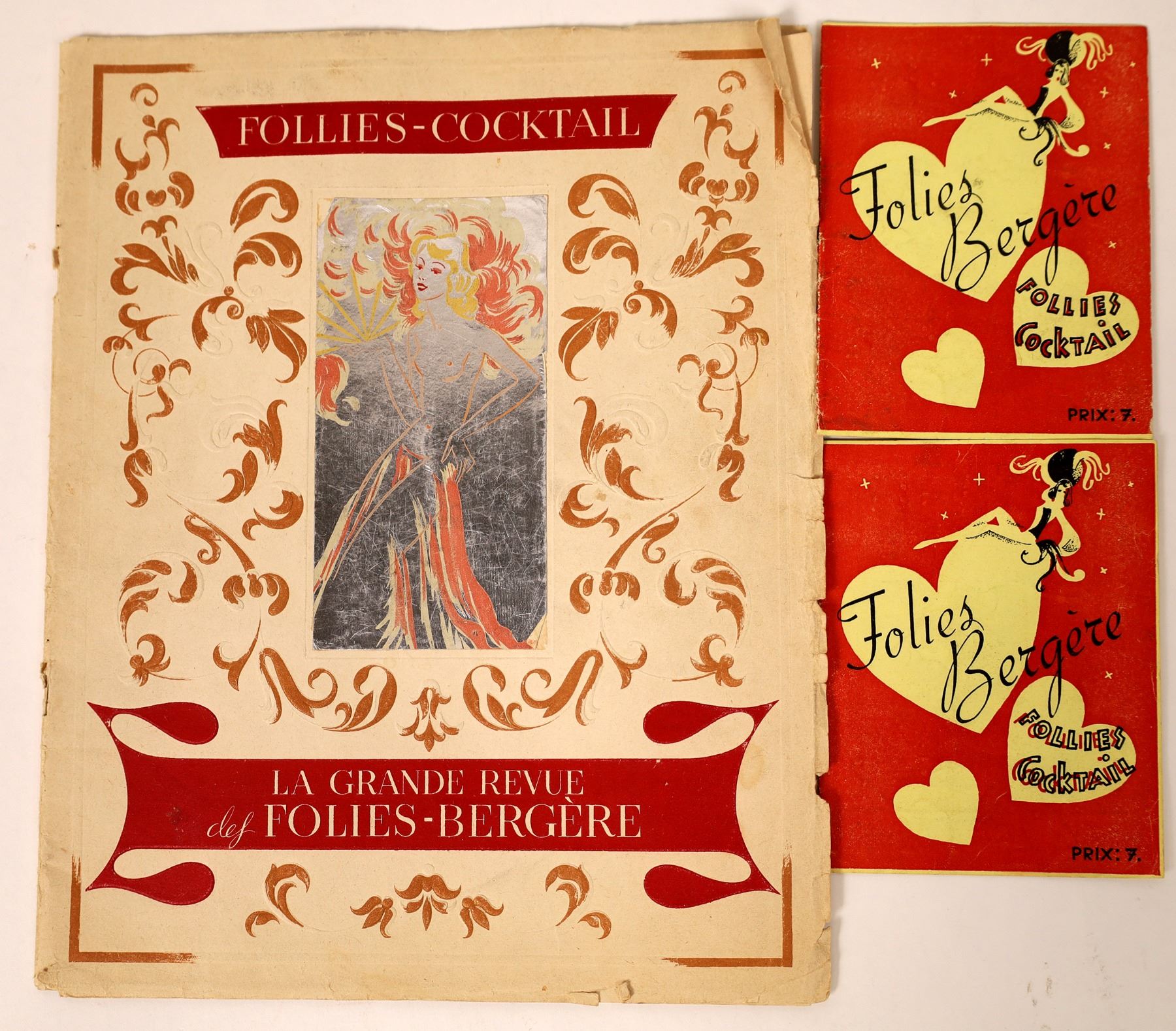 Front and center of the cover in silver foil is one of the famous semi nude dancers! Contains advertisements, sketches and list of actors and actresses. And yes semi-nude dancers! Follies Bergere. Also two small performance booklets. (W. D. Miles Collection)