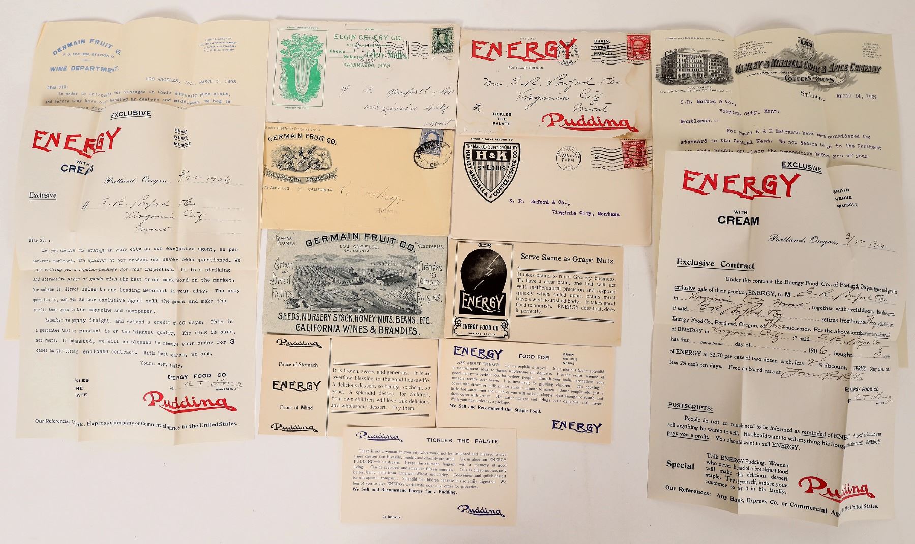 4 c. 1906-09 fruit, Energy, celery, coffee and spice advertising covers with contents. c1906-09
