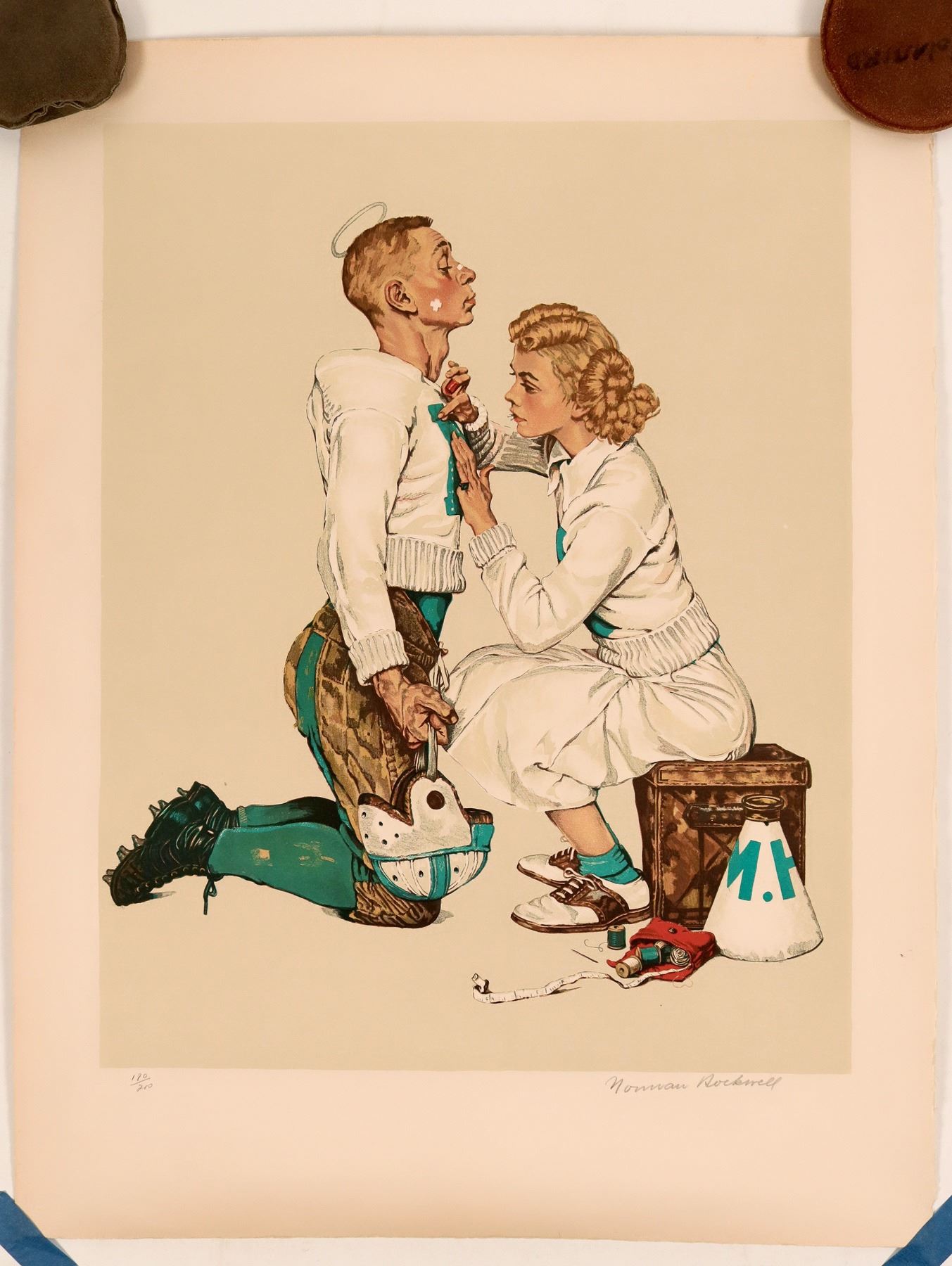 "Football Hero"180/200 original signed lithograph by Norman Rockwell. Printer's mark in lower left corner, signature on lower right. Print: 28" x 21", excellent condition.