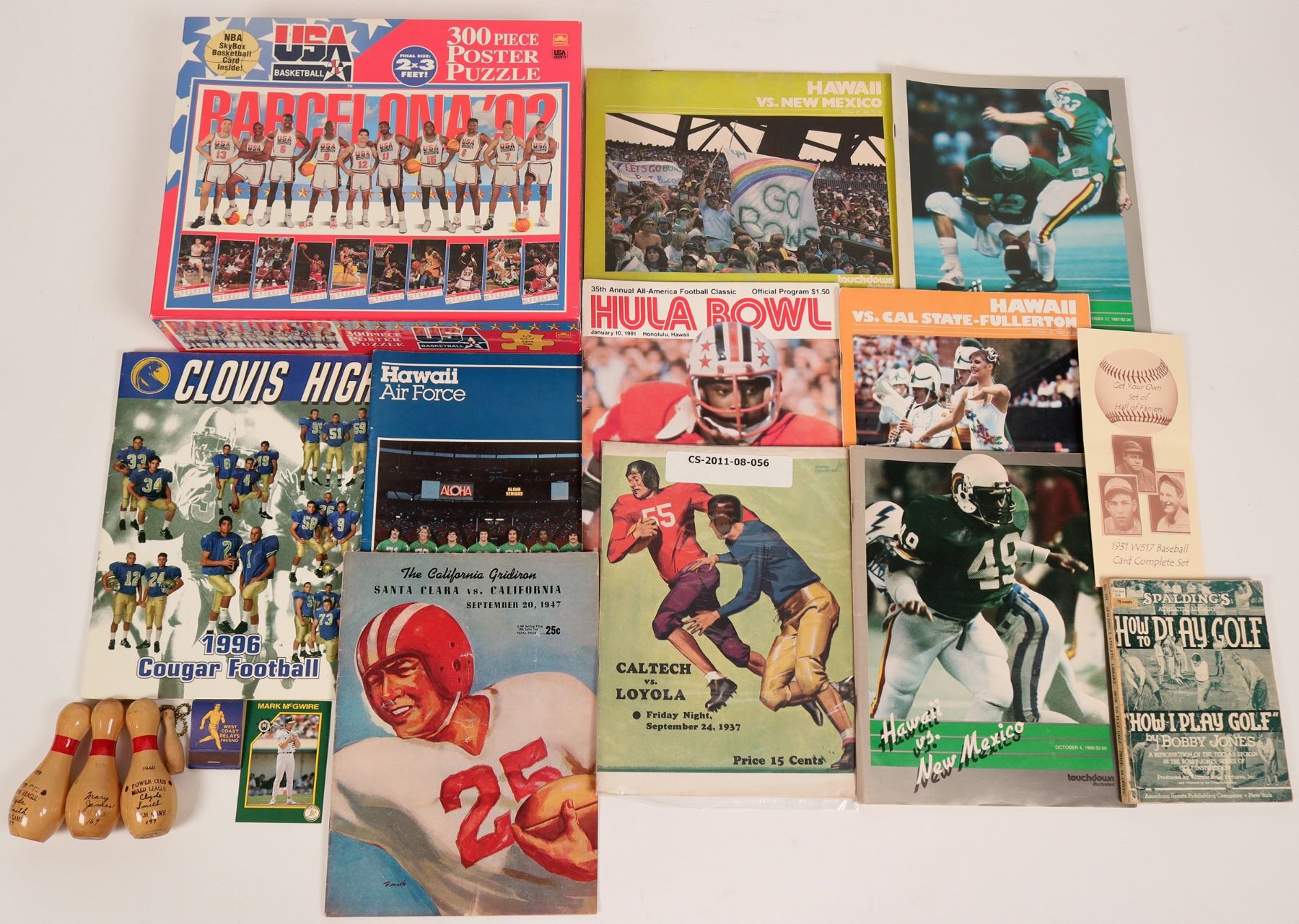 This is a lot of nine football programs, featuring U of Hawaii, New Mexico, Cal State Fullerton, and Utah. The highlight is the program from 1937 advertising a Friday night game between Caltech and Loyola. California 1937-1990s John Reynolds Collection