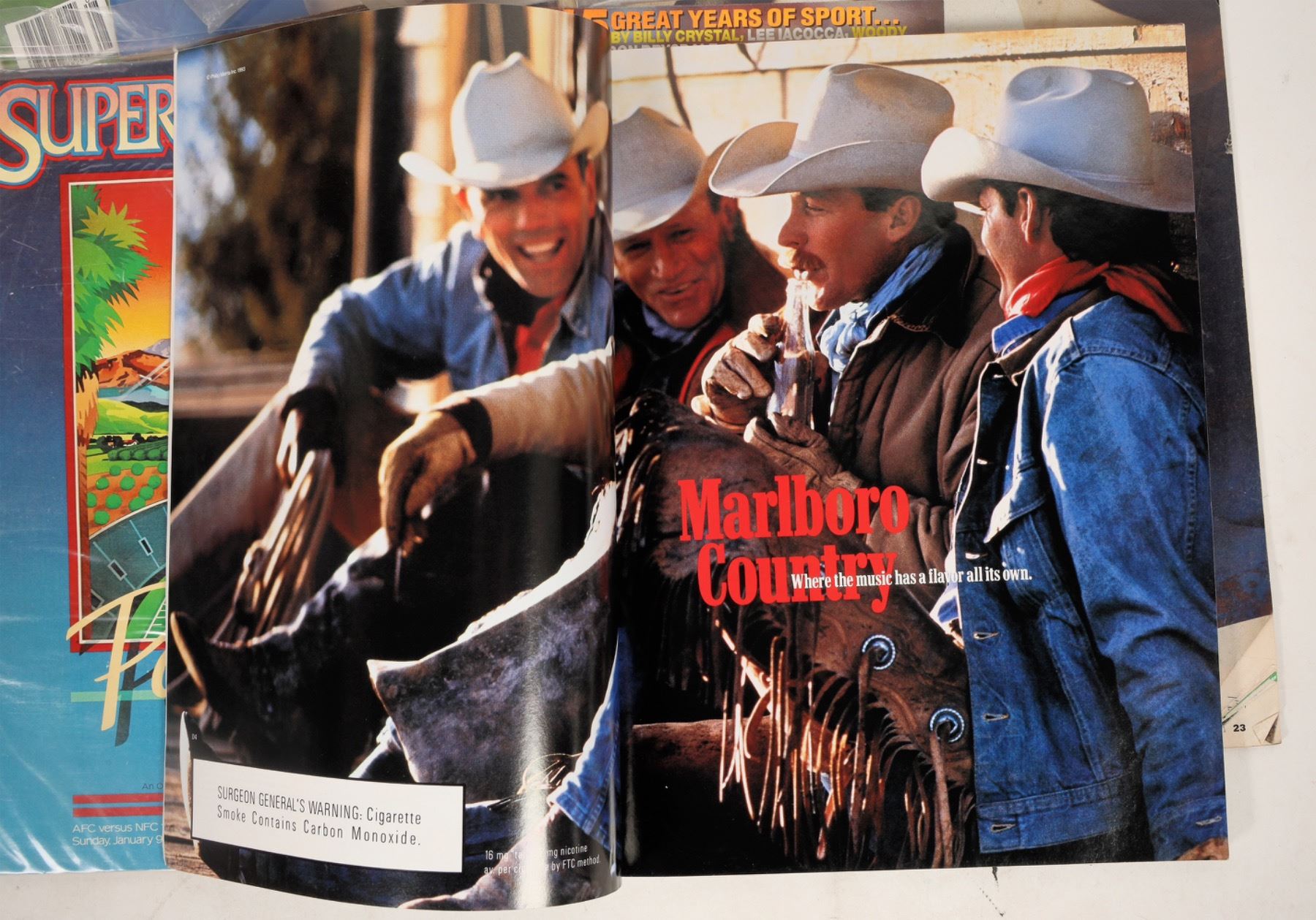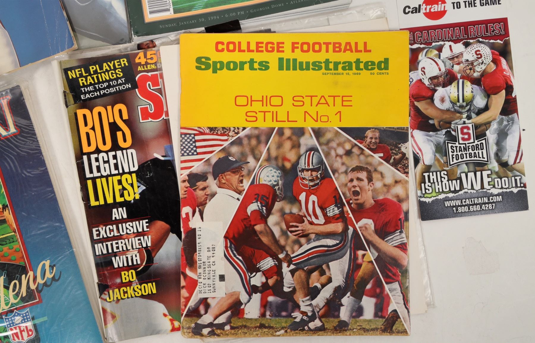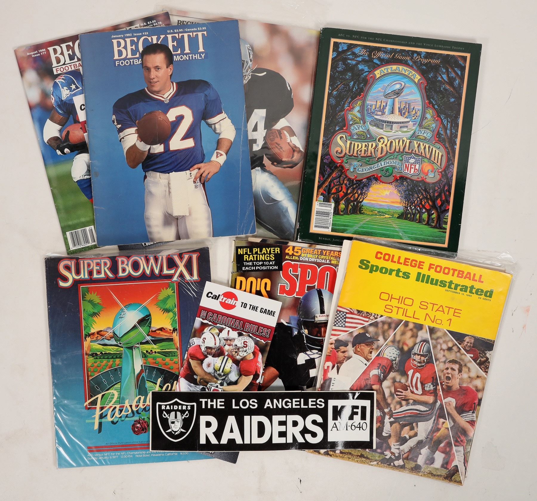 Super Bowl programs from Super Bowl XI and XXVIII, as well as a couple of Beckett Football card publications a couple of Sports Illustrated issues and some other ephemera. All in nice condition. Please see photos for more details.[