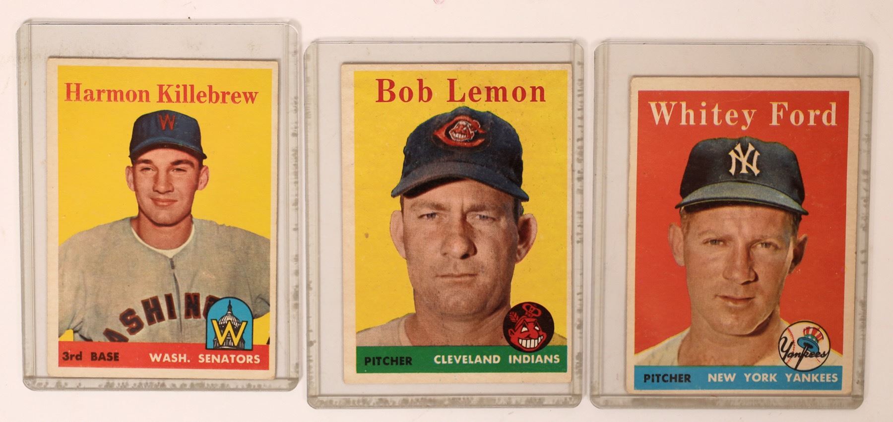 1) White Ford. #320. 1958 Topps. (r-4). 2) Bob Lemon. #2. 1958 Topps. (r-4). Harmon Killebrew. #288, 1958 Topps. (r-4)