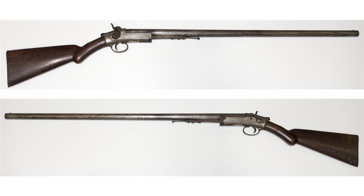 Forehand & Wadsworth, Worchester, Mass. Successors to Ethan Allen Arms, they made a wide variety of single and double barrel black powder shotguns under their own and various trade names. 32 inch barrel with a top lever-action and original nickle receiver. This piece is a parts or restoration project. THIS GUN IS NOT FOR BLACK POWDER SHOOTING. Condition: pitted bore and missing fore grip wood. Nice antique display for the collector who loves "dug ups" and non-working original guns of the past.