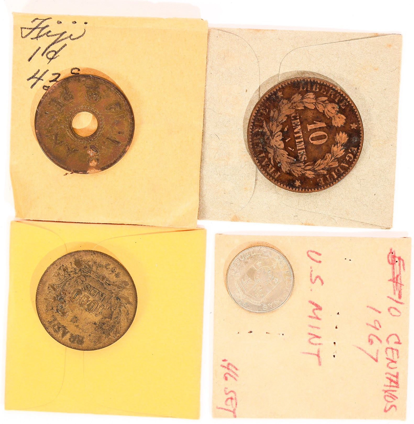 Over 200 Foreign coins from all over the world. Start your foreign coin collection right here!! Fiji; Netherlands; Germany; France; Austria; Switzerland; Portugal; Great Britain; Brazil; Russia; New Caledonia; Italy; Columbia; India; Cyprus; Iran; Singapore & many others. Includes a proof India 1974 50 rupees KM 255 with over a half ounce of silver![ Foreign