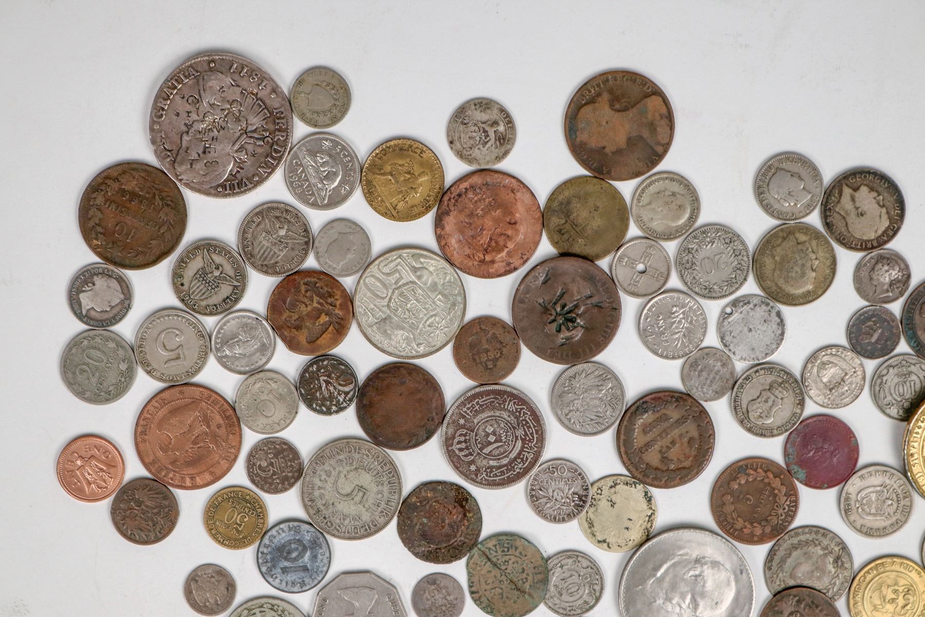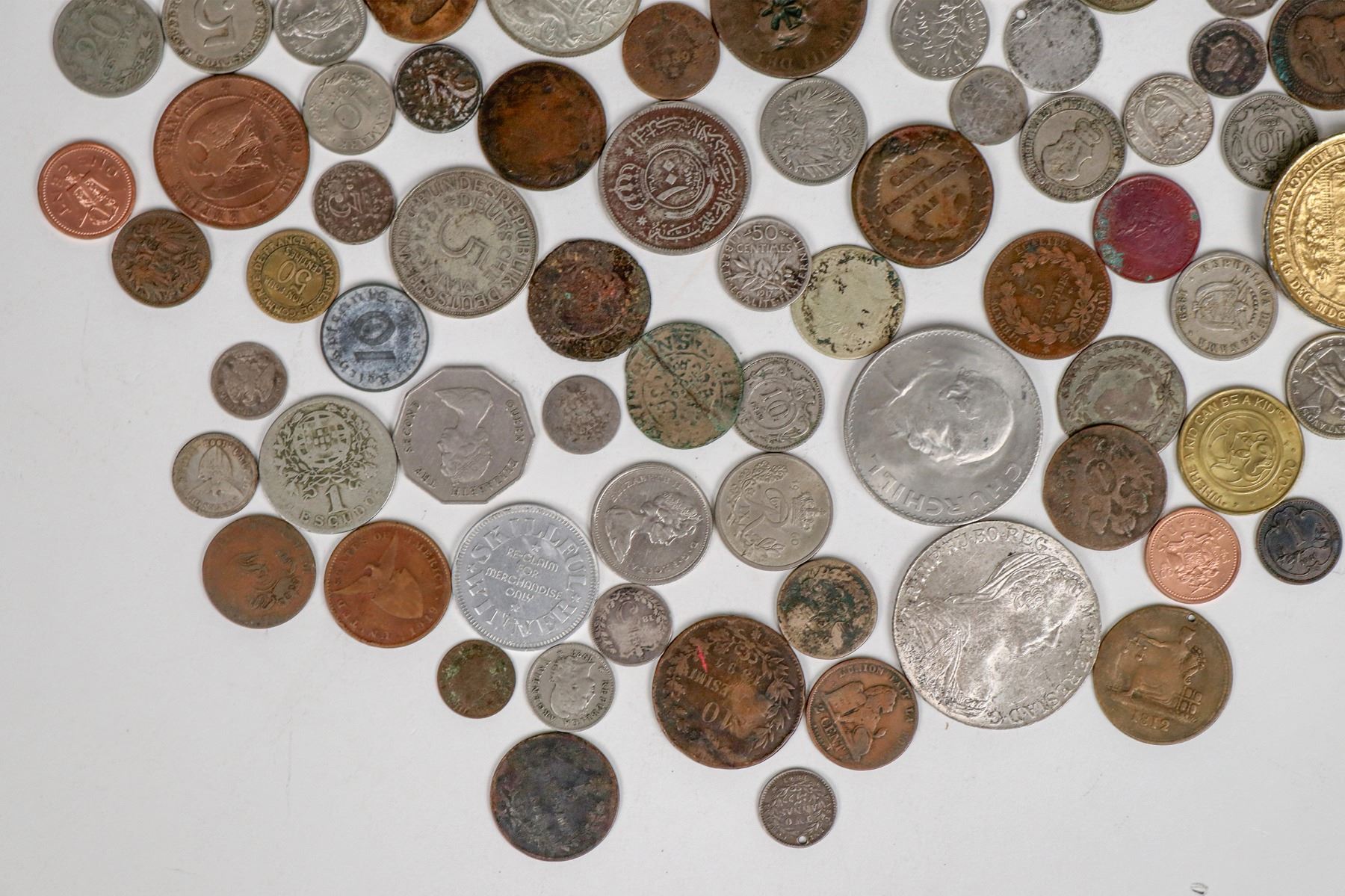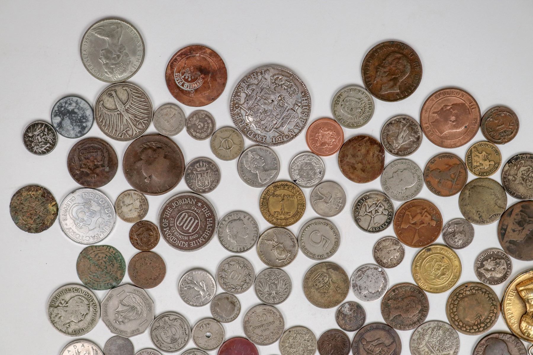 Lot of over 80 foreign coins. 1965 Churchill crown; Maria Theresa thaler; 1966 Australia 50 cent; 1927 Portugal one escudo; Germany; Philippines; The Hashemite Kingdom of the Jordan, 1949; Canada; Panama; 1917 France; 1894 Italy & many more.[ Foreign