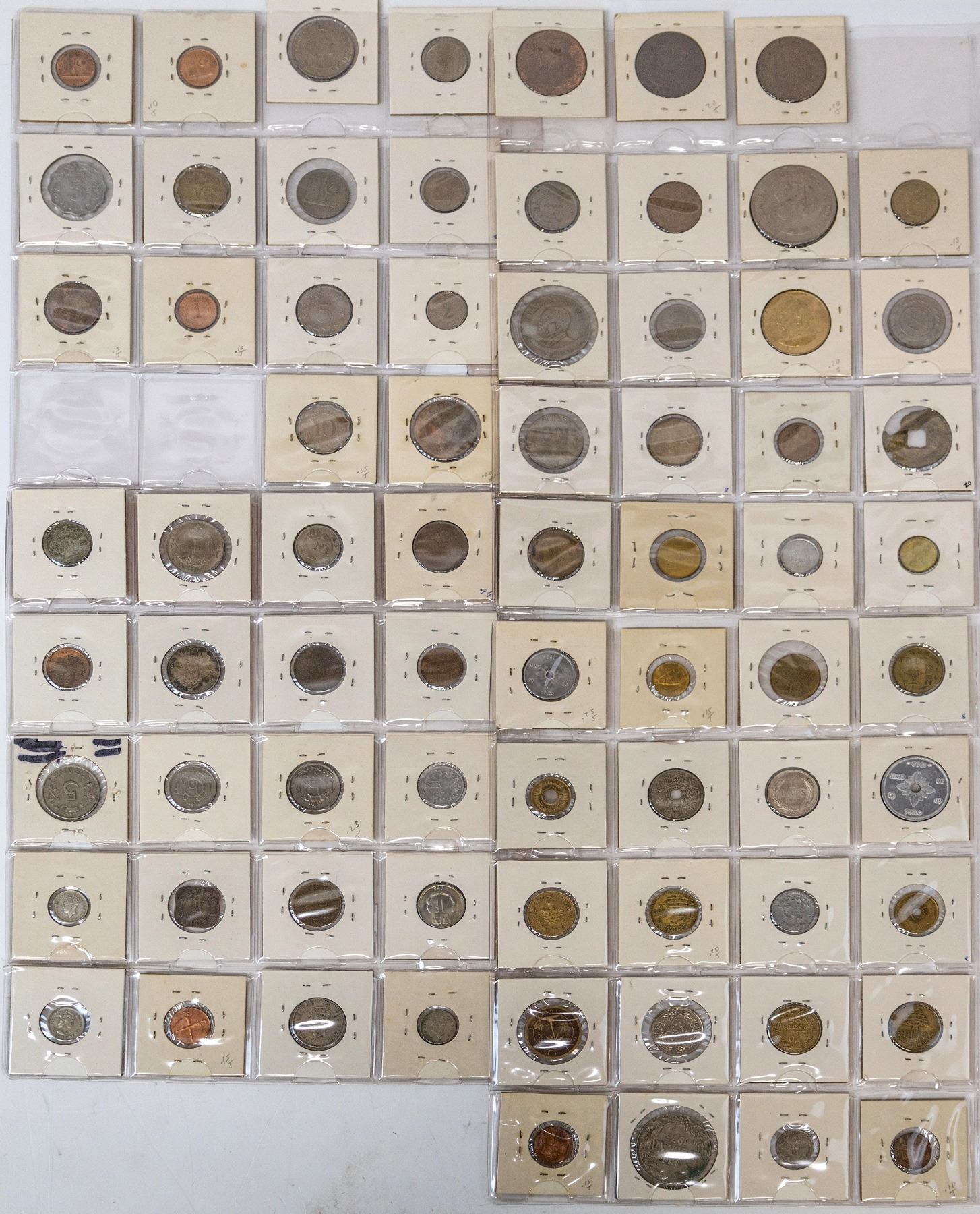Lot of 74 coins from various countries: Jersey (5); Jordan (3); Kenya (3); Korea (10); Kuwait; Laos (2); Latvia; Lebanon (9); Liberia (4); Libya (4); Luxemburg (10); Macao; Malaya (British Borneo) (8); Malaysia (4) Maldive Islands; Malta (3); Mauritius (4). One Korean coin is 1888, the rest are 20th century.