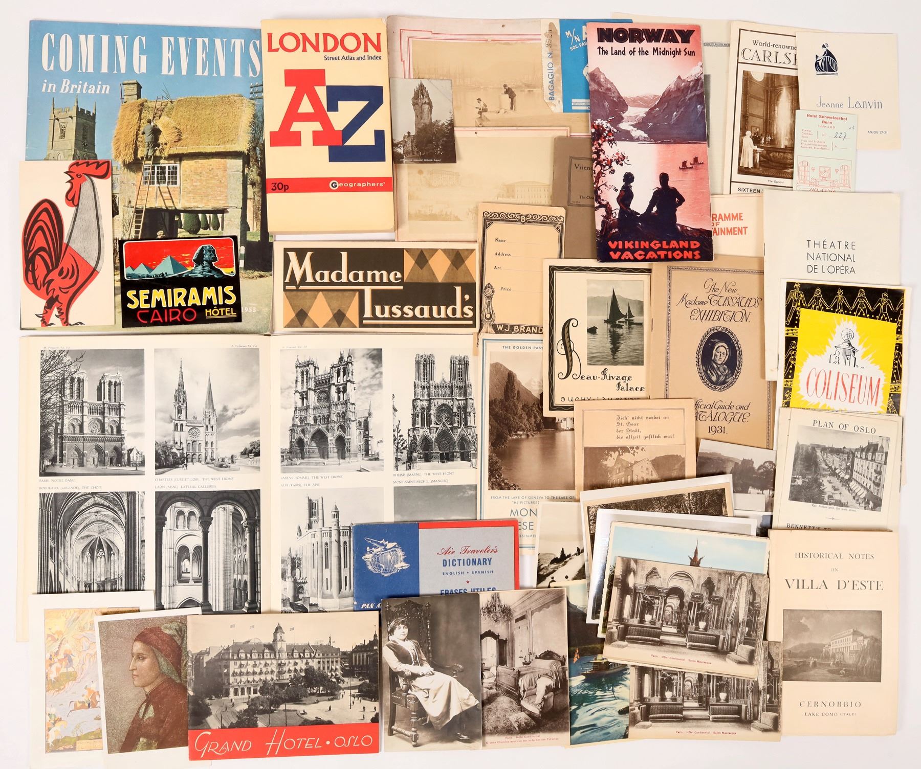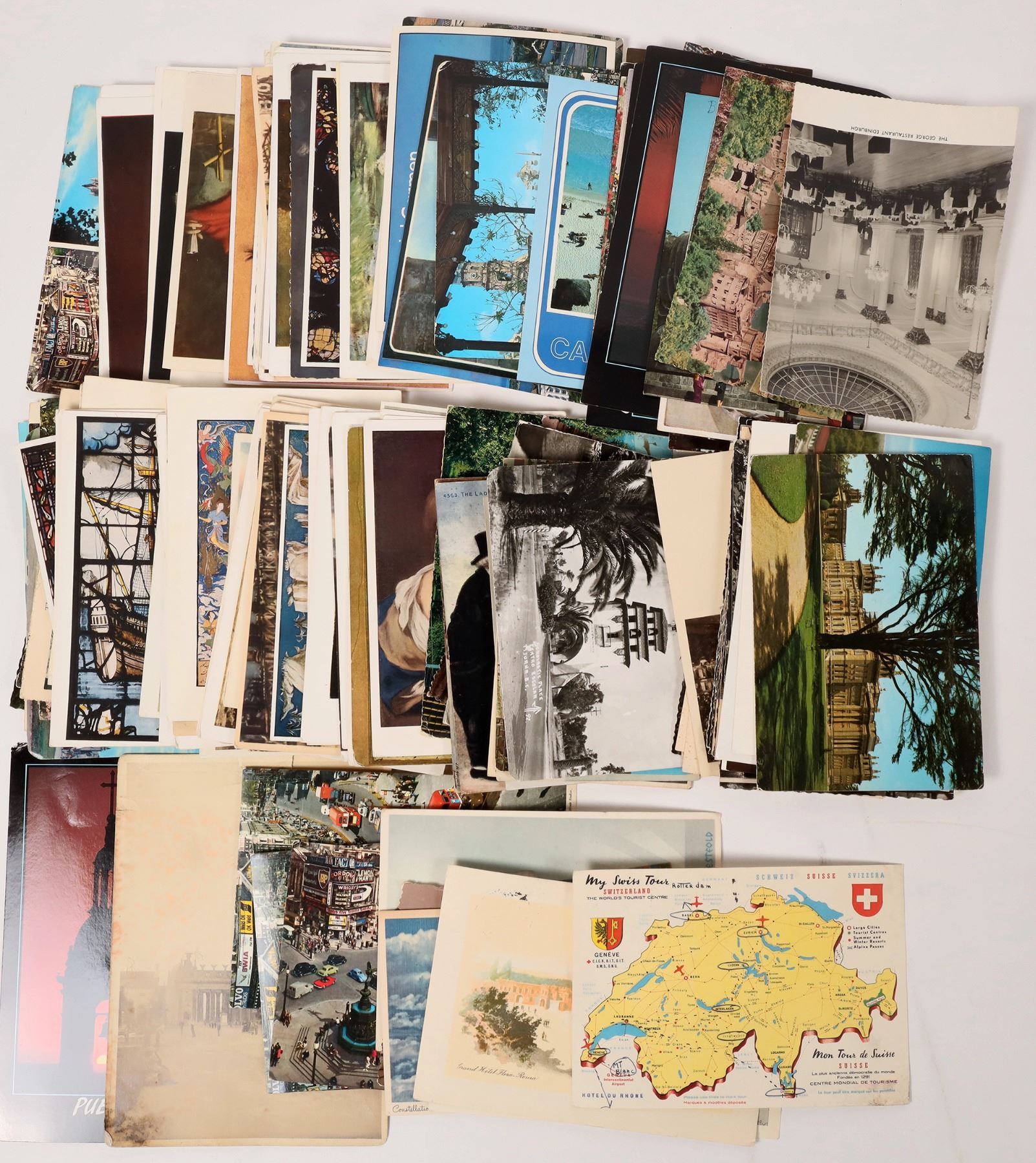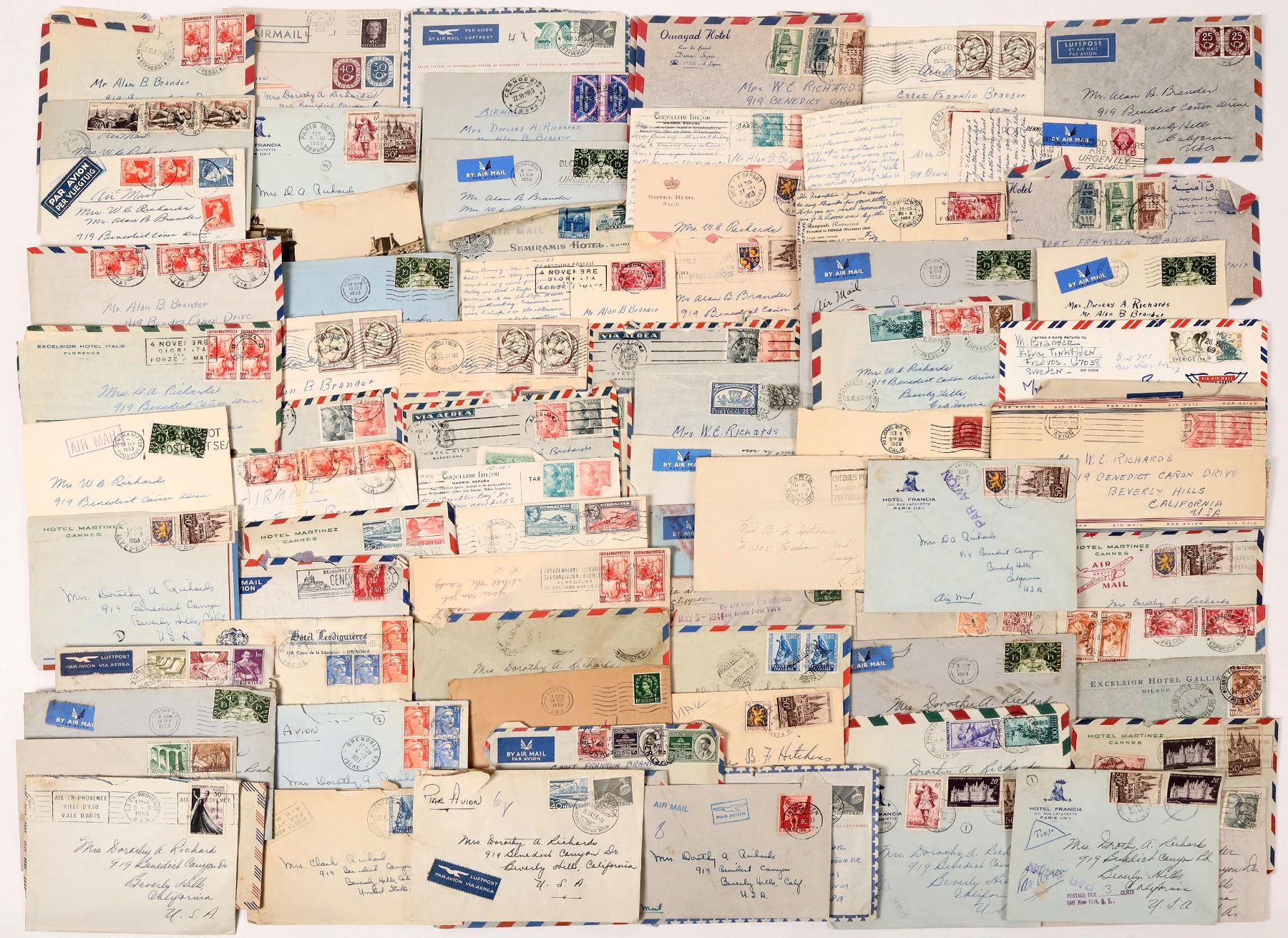 Ephemera from France, Luxembourg, Norway, Oslo, Switzerland etc. About 100 foreign postcards. About 100 foreign covers c. 1950's to the Brander family in Beverly Hills, CA.