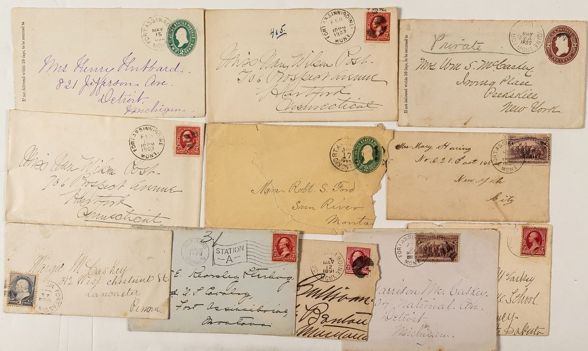 Lot of eleven. Two territorial including a c1884 to Robert S. Ford of Sun River. Mostly 1890's. City: Fort Assinaboine State: Montana Date: c1884-1903 ID: 37023