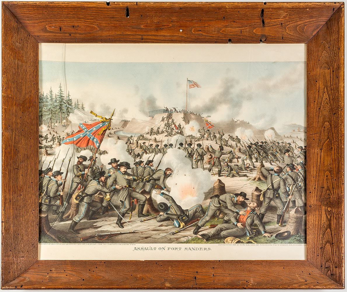 Kurz & Allison made their reputation in the 1890s on prints like these depicting Civil War battles. While they were criticized for the lack of historical accuracy, they were more meant to tap into patriotic sentiment. Thirty-six scenes were published, drawn by Kurz who had served in the CW.