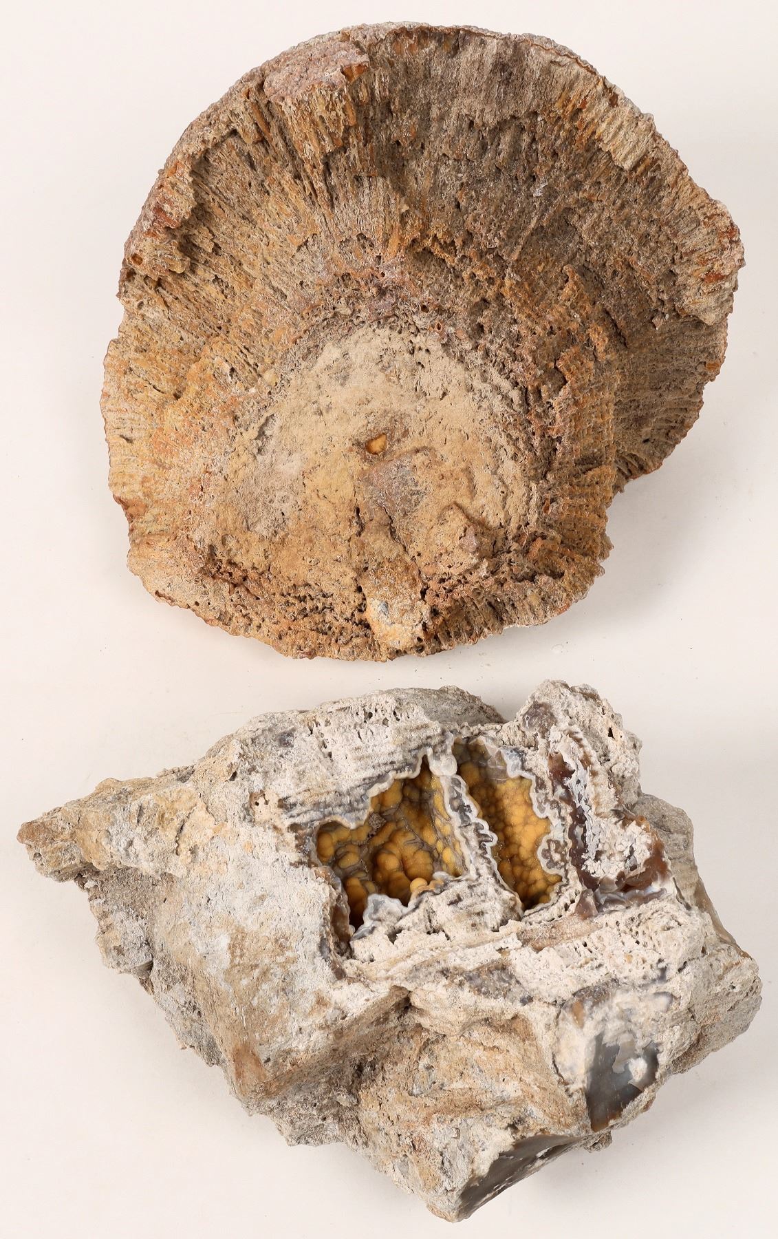 Lot of 2. Two fossil coral specimens : 9x8x6Ó and 8x6x5Ó. Approx. 10lbs Chunlin Zhu Collection