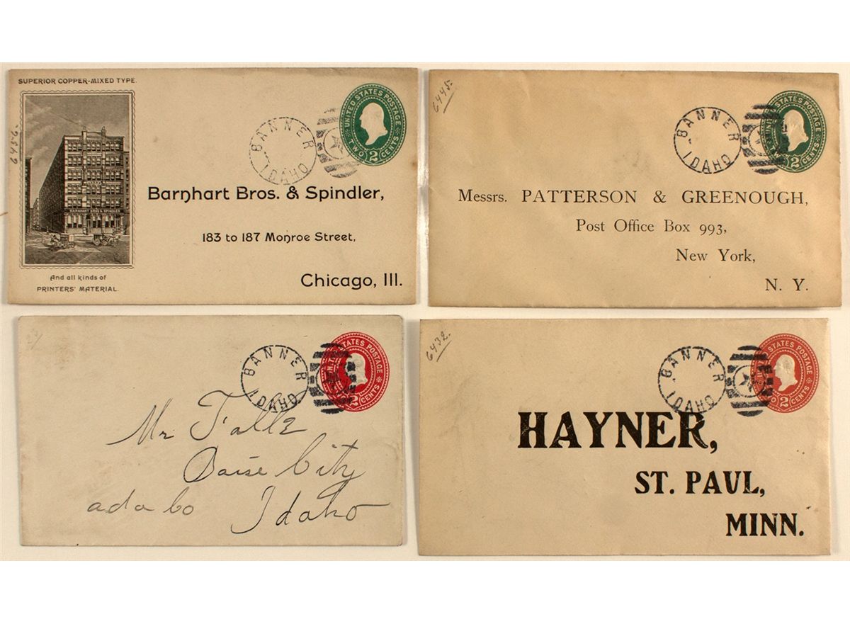 All have the oval stamp with a star in the middle. One pictorial corner advertising cover of the Barnhardt Brothers & Spindler of Chicago. Short lived post office. 1878-1913. These are all very similar and possibly fake?
